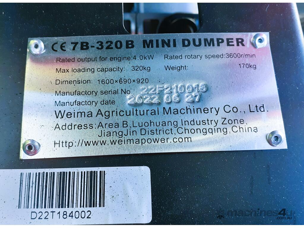 You Tube video link demonstrating the starting process and operation of the mini dumper.