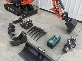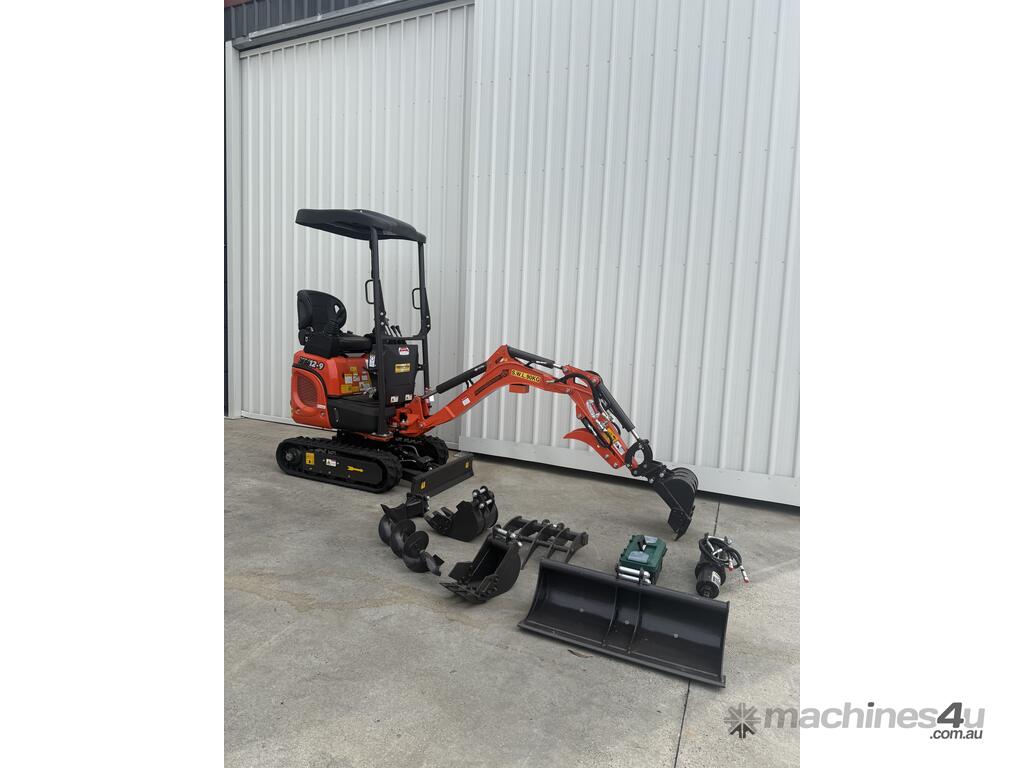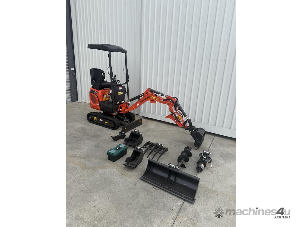 Brand new 2025 Pilot Control 1.2 T Excavator now with HYDRAULIC THUMB GRAB, 2 speed Tracking, upside down boom to protect boom cylinders and 3 Cyl Kubota Engine