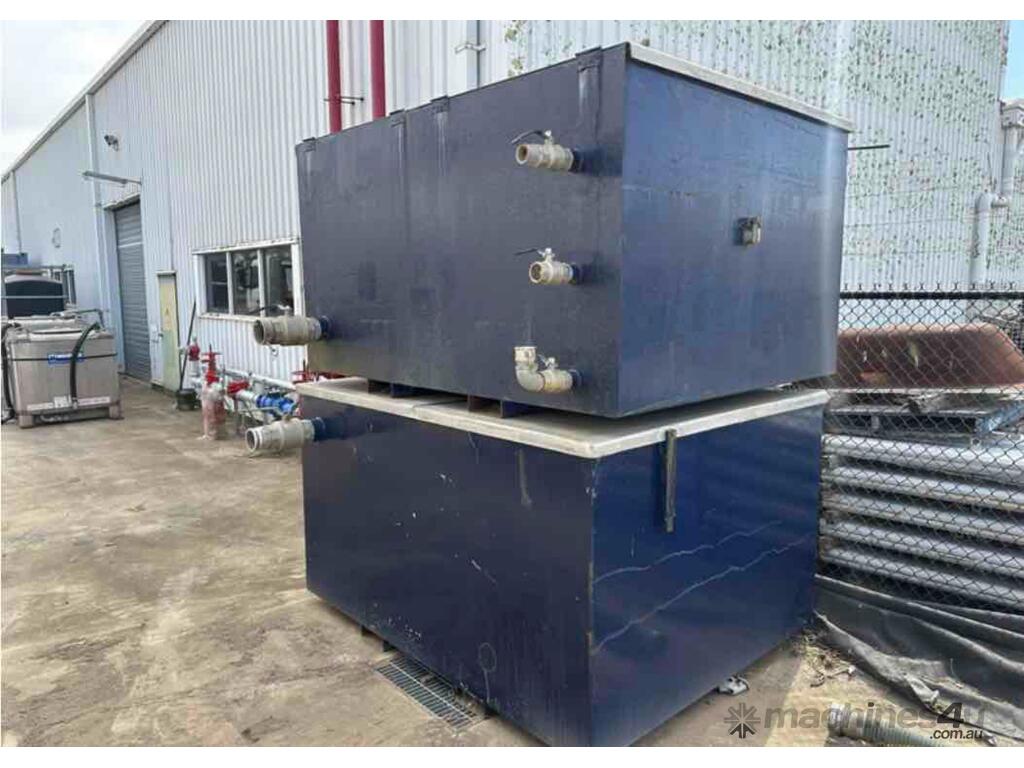 Heavy Duty Steel Framed Storage Tank, 4x Filling Discharge Ports mounted on Skid Base with Forklift Pockets