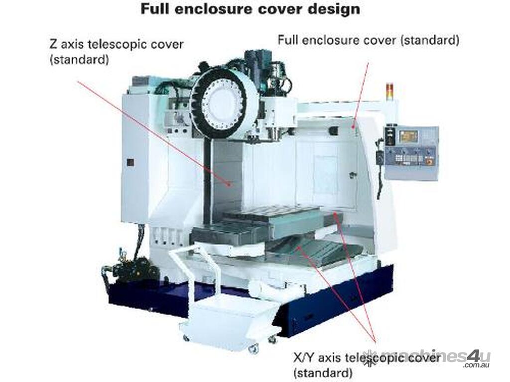 C/w: arm type ATC, coolant flood ring, preparation for CTS, preparation for 4th axis, oil skimmer, heavy duty roller type linear guide ways for all axes, integrated clipboard, tool storage rack, air line and coolant wash down gun. Many other options are available on request.