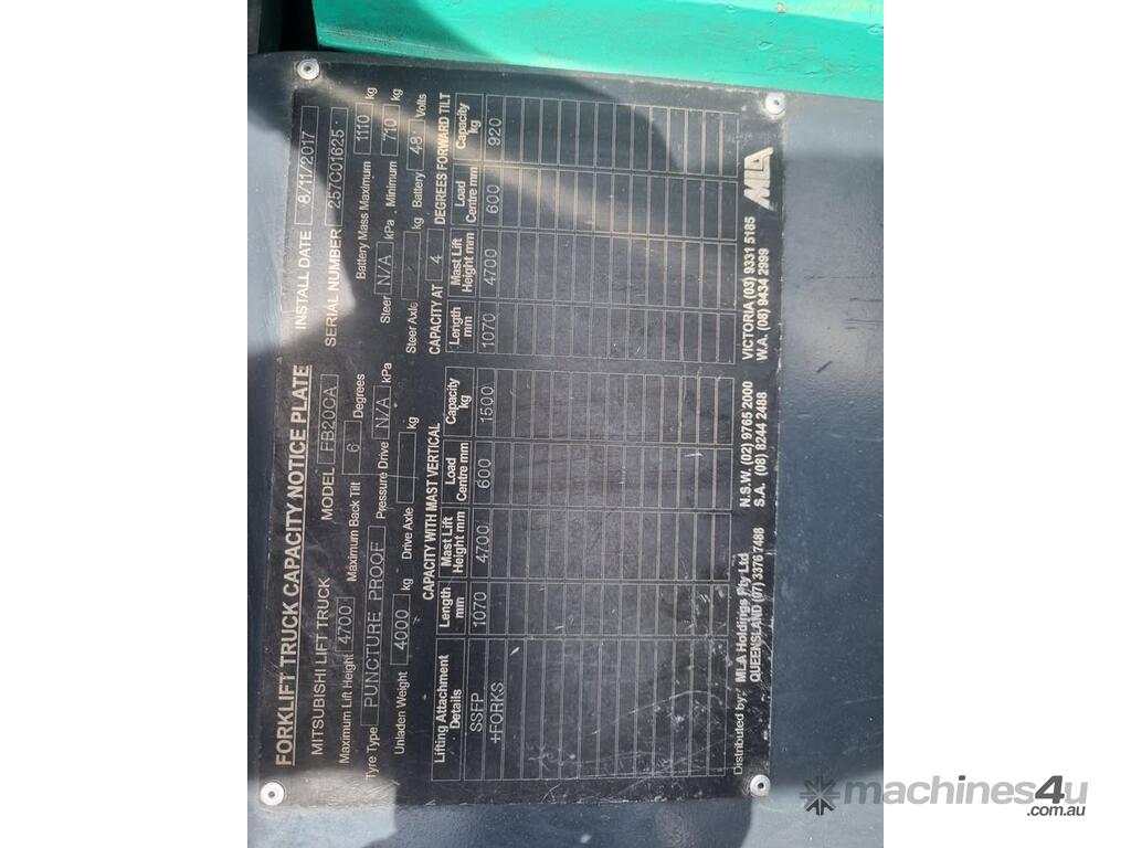 ????? Mitsubishi FB20CA – 2.0T Electric Forklift | 4700mm Lift | Only 2,000hrs! ?????