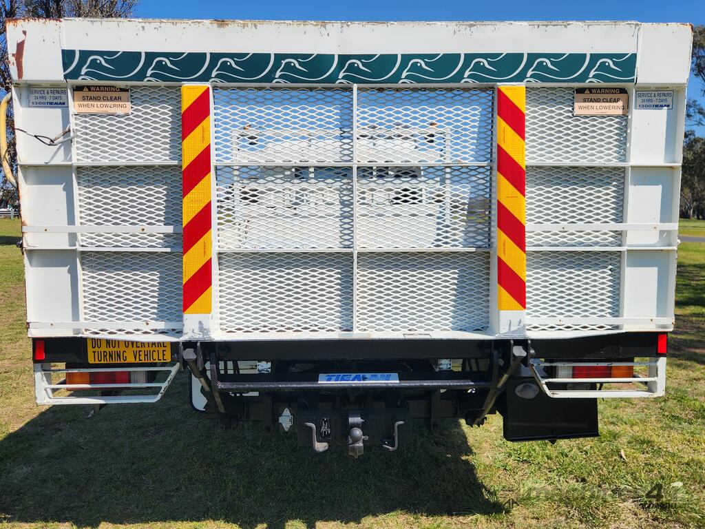 2014 Mitsubishi Fuso Canter 815 Dualcab 4x2 Traytop with Tieman Tailgate Loader. Ex Council with only 146,934 Kms