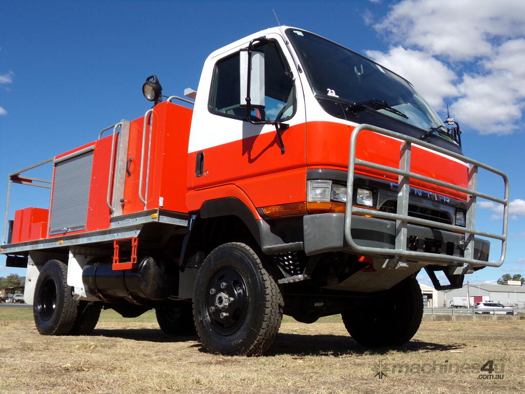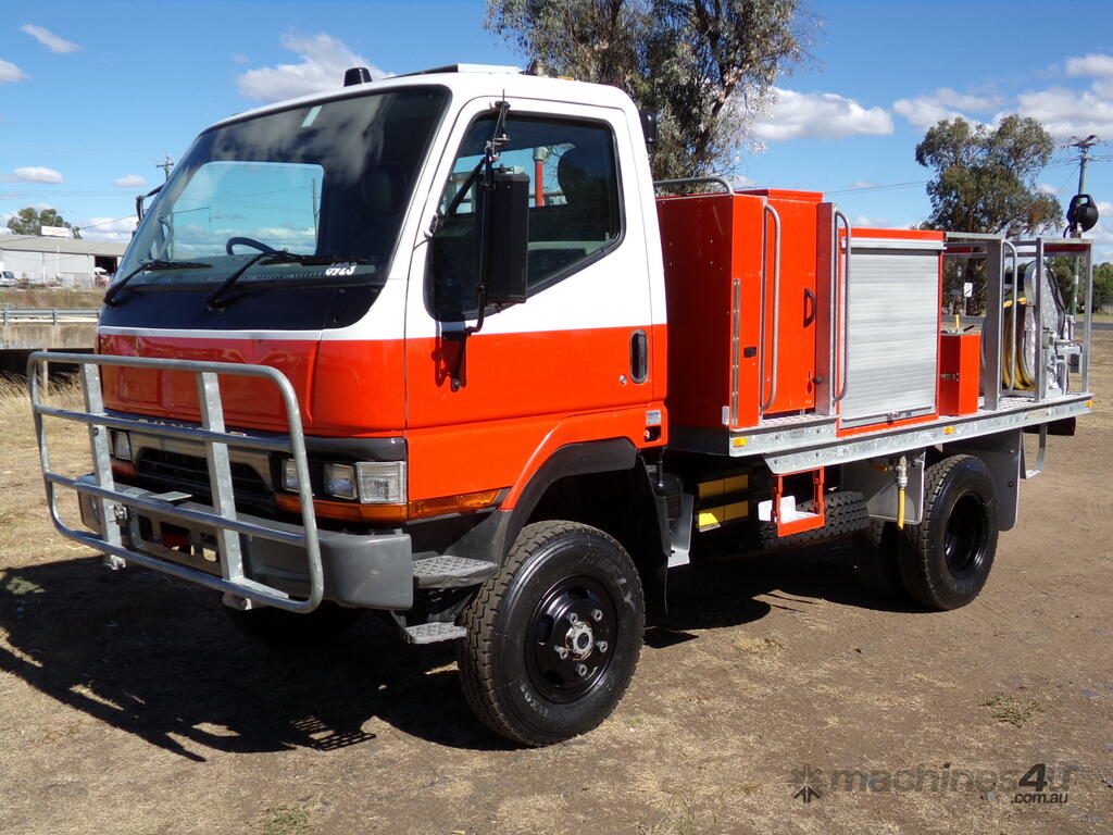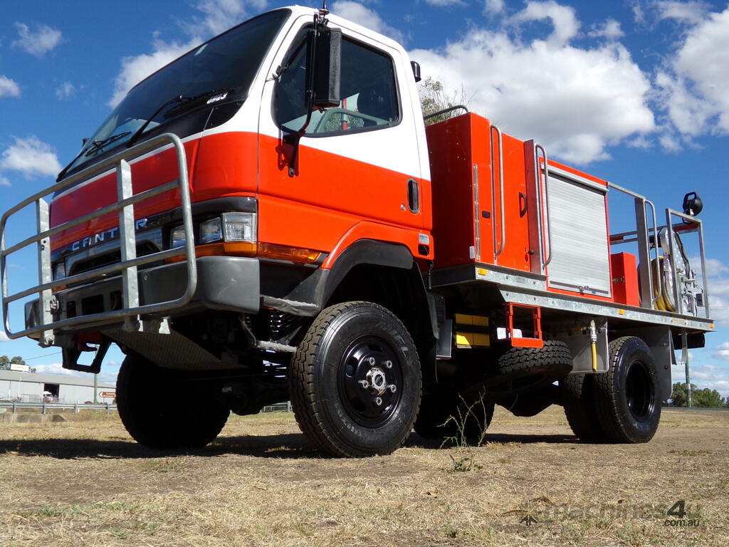 9/1998 Mitsubishi Fuso Canter FG 4x4 Single Cab Traytop Firetruck. Ex NSW Rural Fire Service with only 41,781 Kms. Hatz Diesel GAAM Pump.