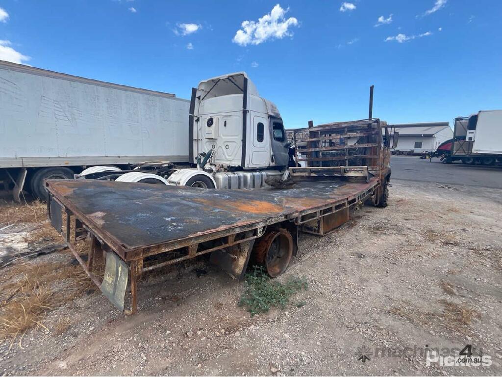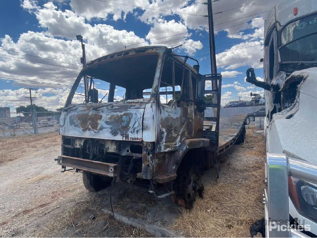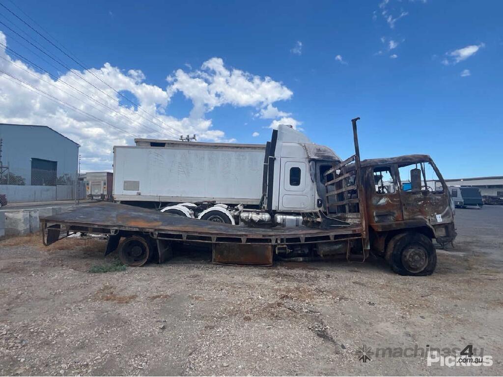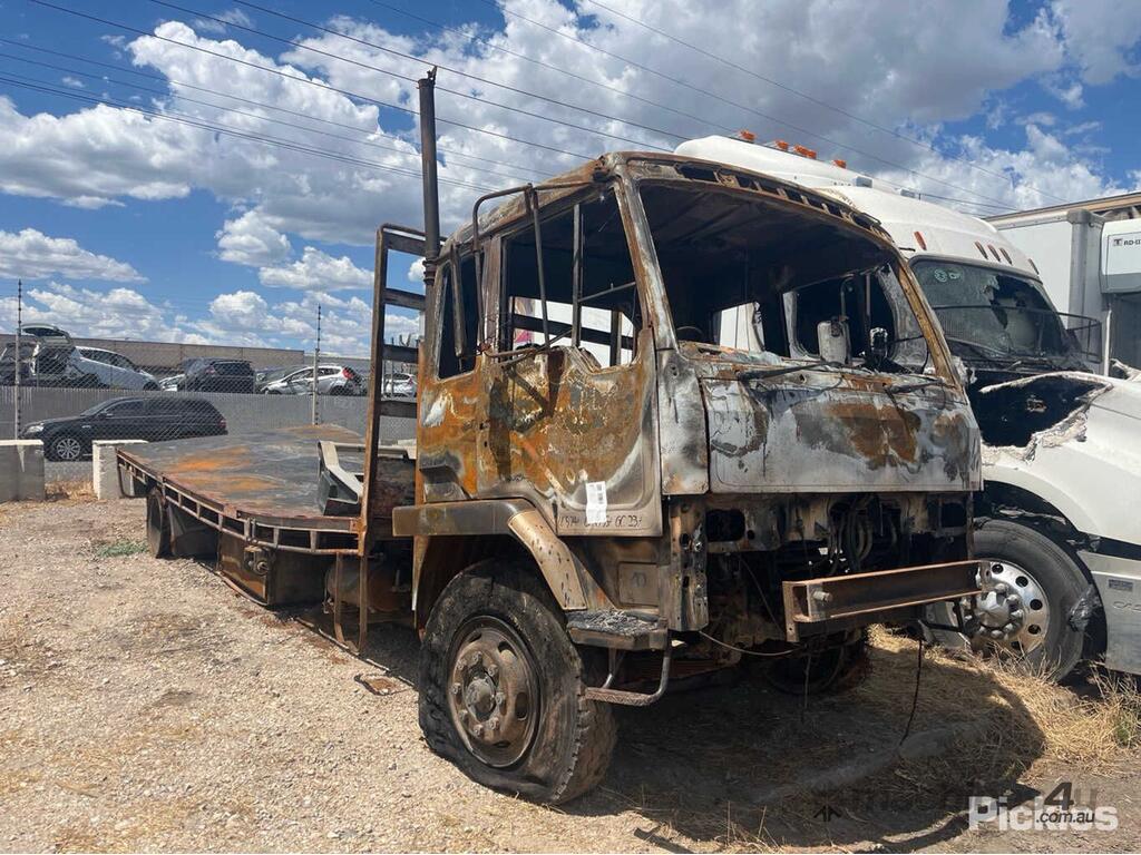 No C/P,Mitsubishi,Tray Day Cab,Leaf Spring,Odometer not visible,Hourmeter not visible,Colour: Burnt,Rego. No: NP(UTW867), Unregistered SA,VIN: FM515MSTB07050958,Length: 8.6 m,Sold with No Plates,WOVR Status: Statutory Write-Off,Incident Type: Fire