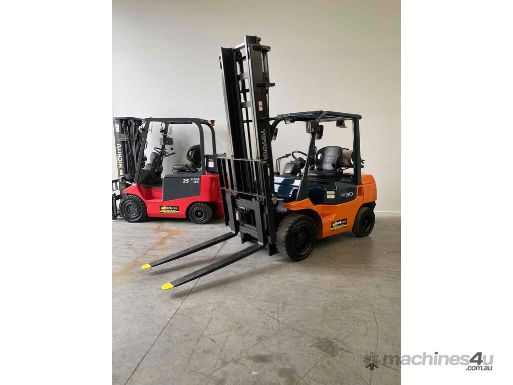 Mitsubishi 3.0 tonne lpg forklift with container mast,side shift,fork positioner and solid tyres.Forklift is mechanically A1 has 8800 hours and will come serviced with 3 months warranty.Forklift is currently being painted.Can be viewed by appointment only in Pakenham Victoria