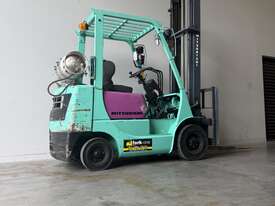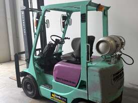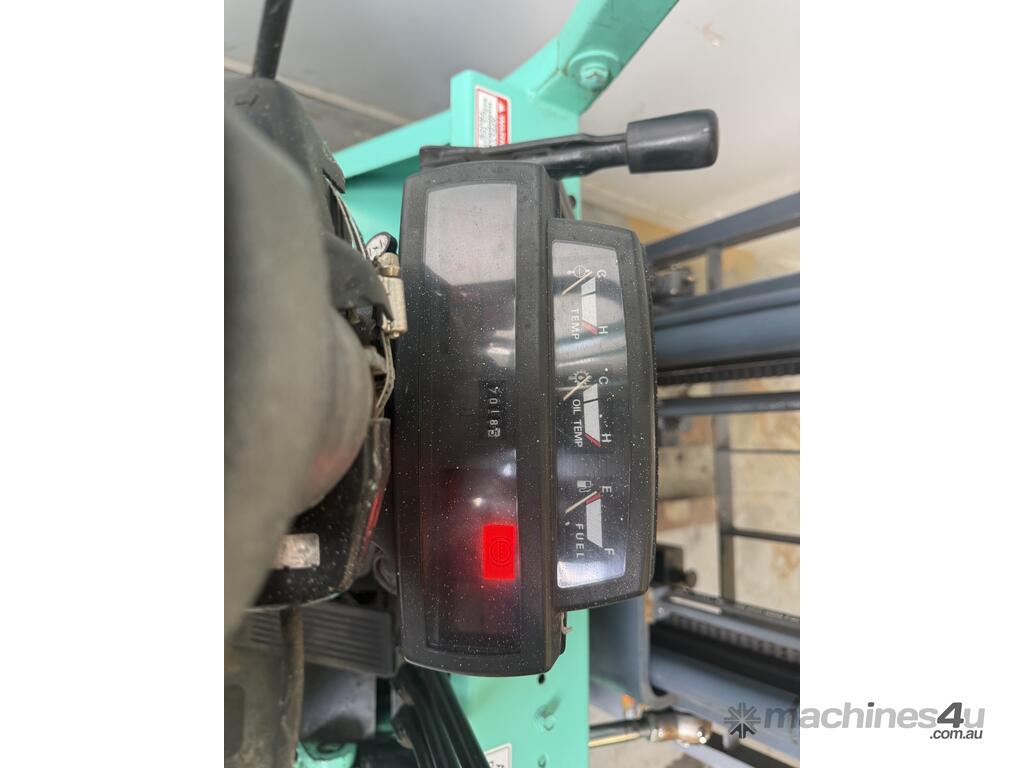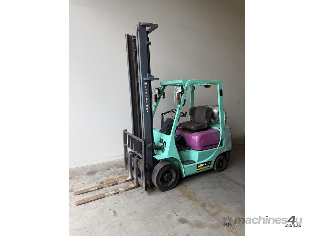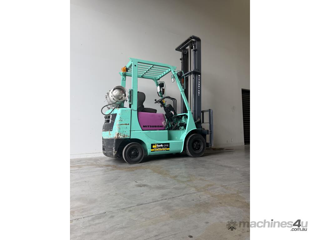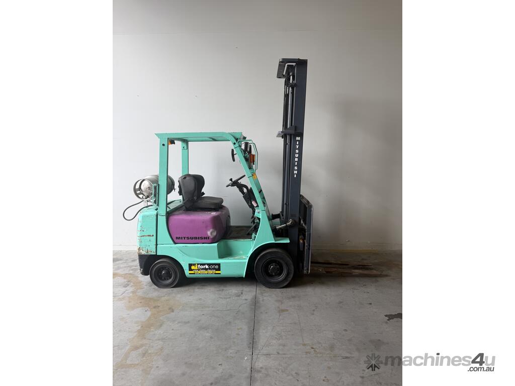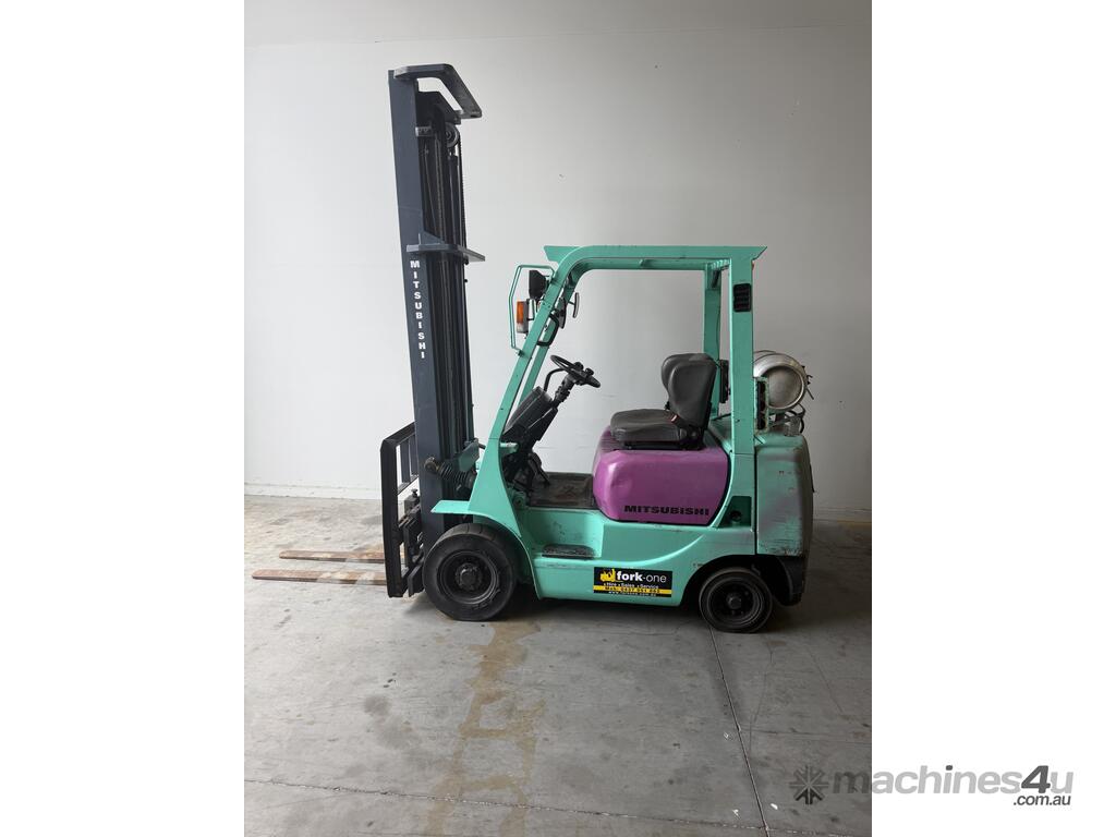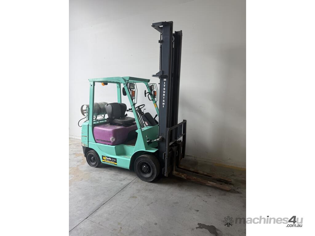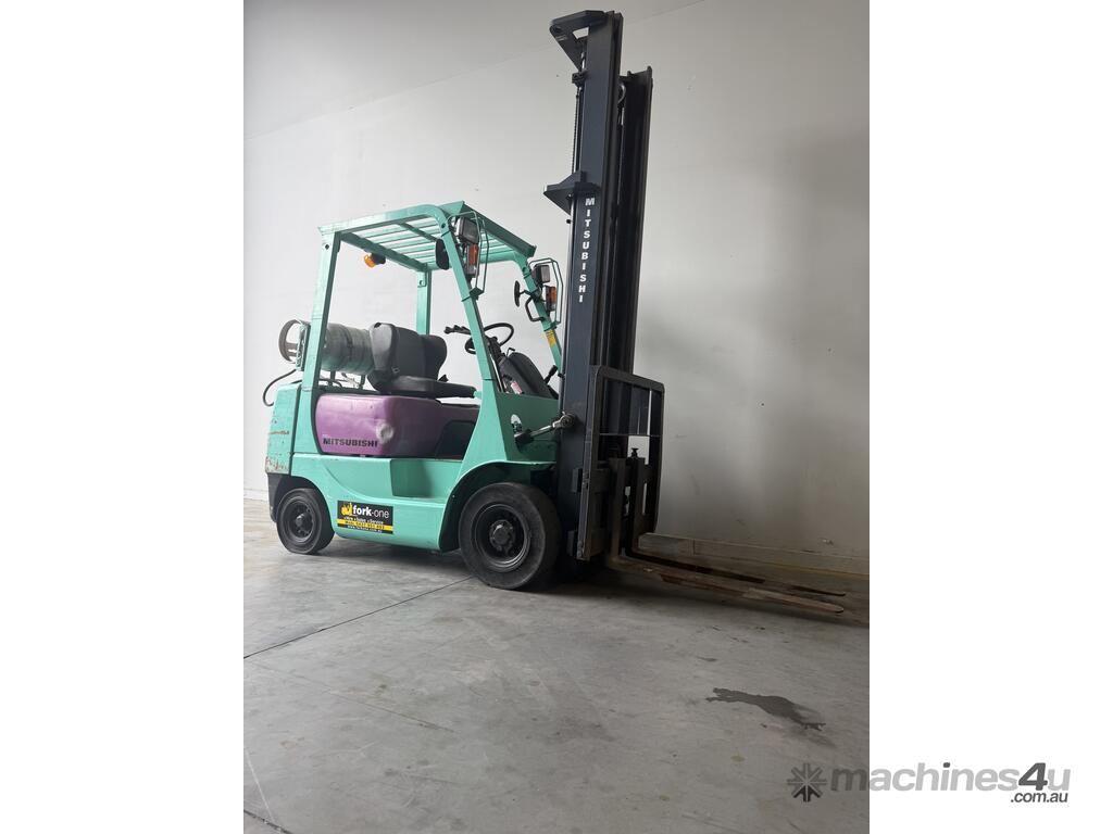 Mitsubishi forklift 1.8 tonne lpg forklift.Solis black tyres with side shift and 2 stage mast.This forklift is being sold as traded and would be perfect for a farm or ou door use.It blows smoke and is hard to start cold.Once the forklift warms up it starts straight away.Apart from the smoke it drives well and does everything a forklift should do.