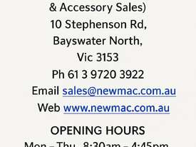 Newmac Equipment Pty Ltd was established in 1983 and since that time has provided both machines and accessories to industry and the education area. We stock a comprehensive range of both new and used machines and our dedicated staff are able to assist with solutions to your complex manufacturing requirements. We also stock a large range of collets, threading tooling and accessories.