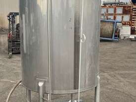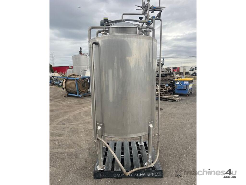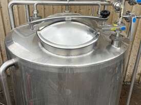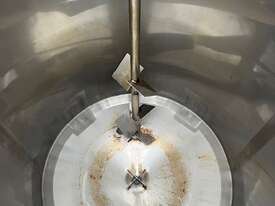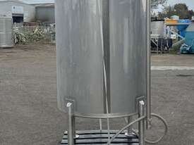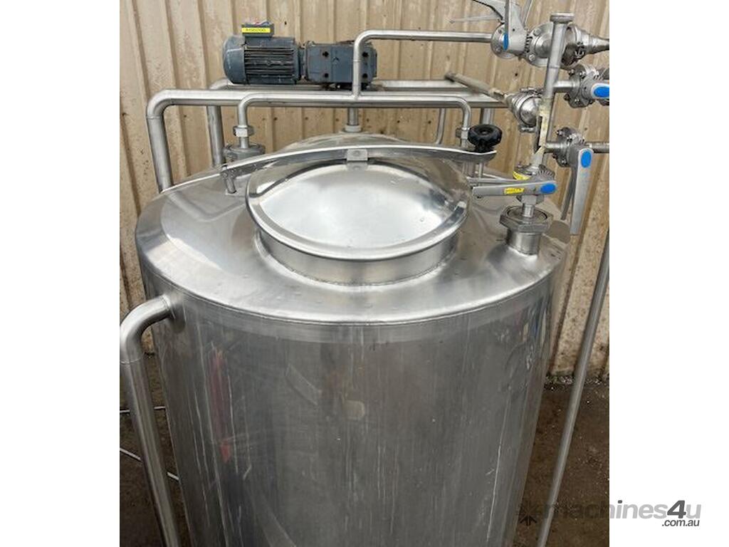 Stainless steel mixing tank 1700 lt. Cone bottome to a 50mm outlet. CIP spray balls in tank. Agitator. 0.55kw 240 rpm SEW geared drive 2.5m overall height. Ex food plant.