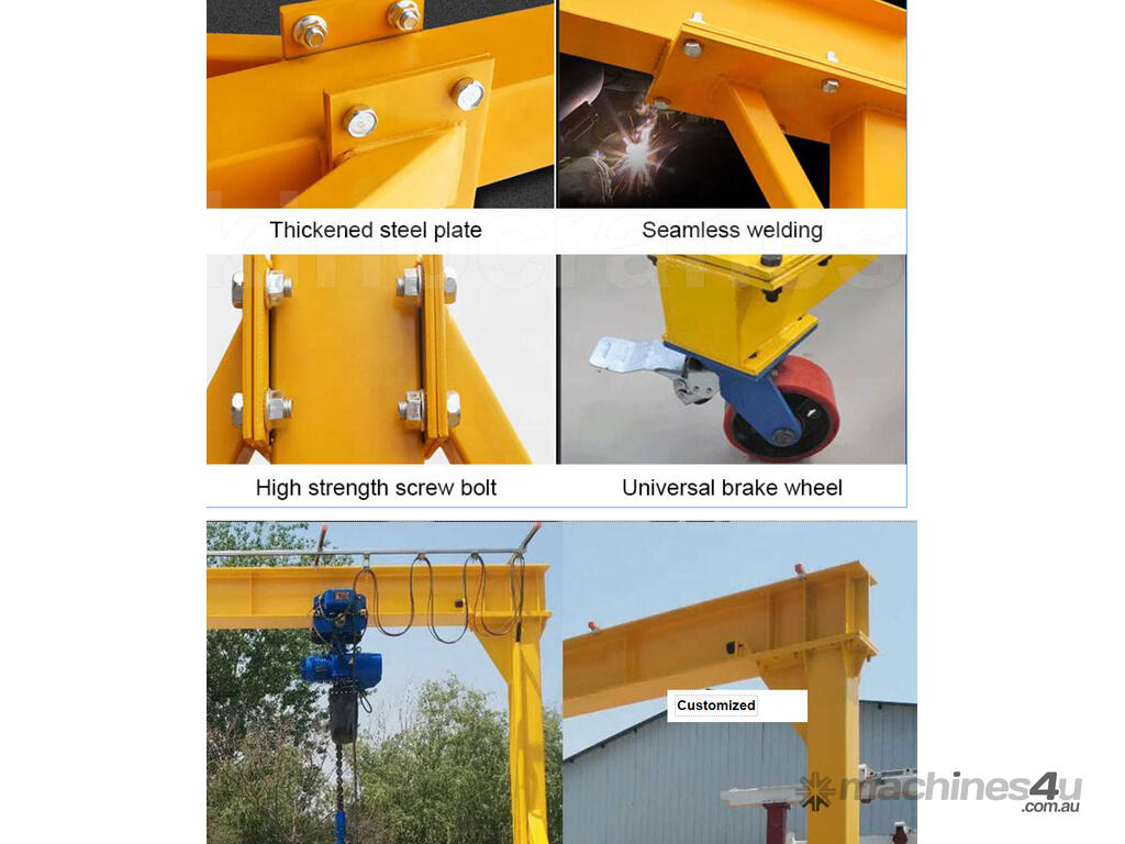 These Mobile Gantry Cranes can have powered drive wheels, motorised extended lift, remote control and quality components throughout. Highly manouverable in tight situations and easy to operate.