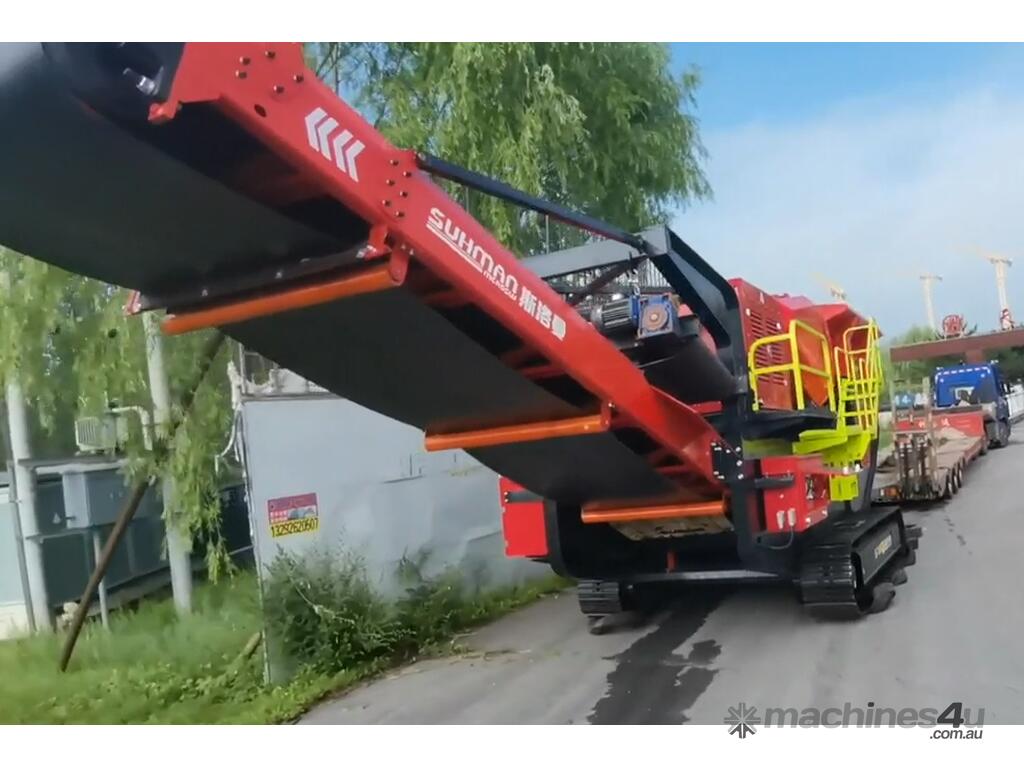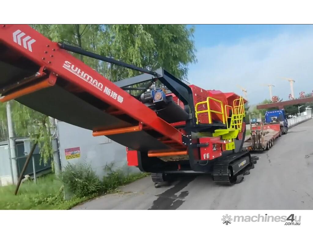 Equipped with a feed hopper, vibrating feeder with a pre screen, jaw crusher, stockpiling conveyors, and a diesel generator for stand-alone operation.