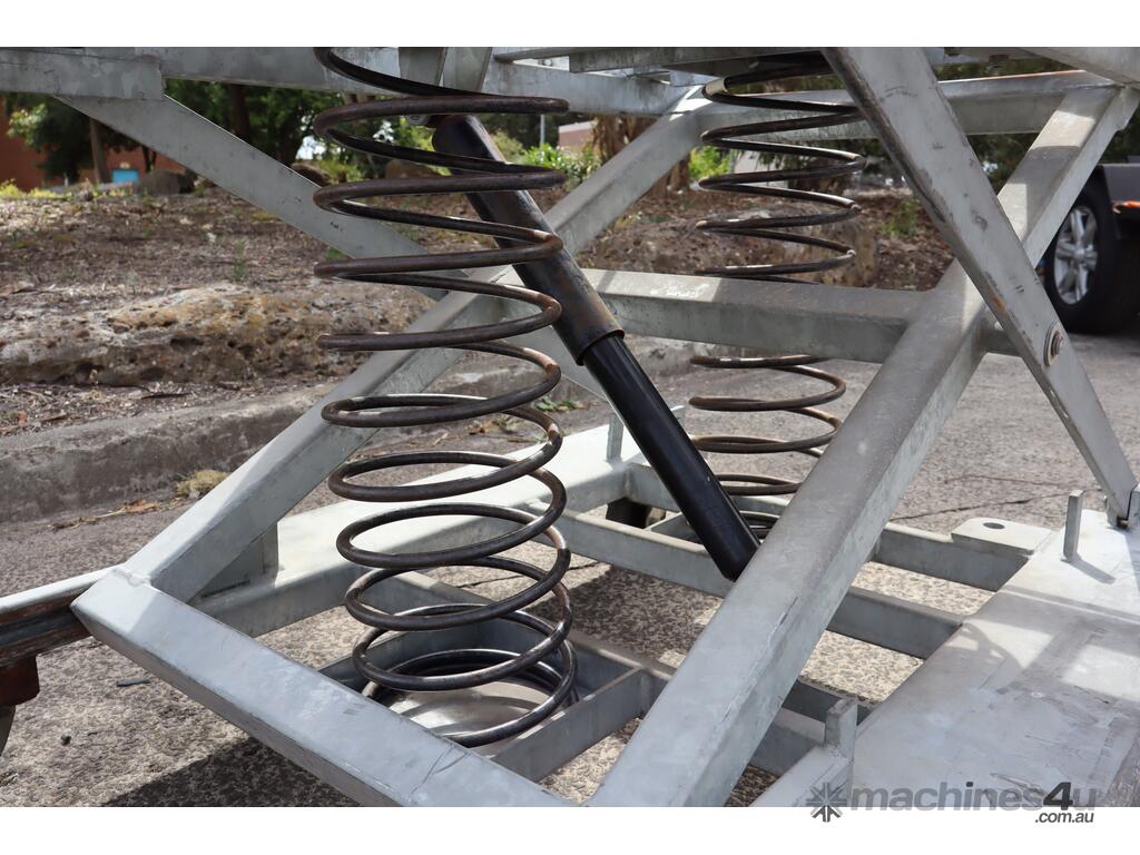 Pallet Levellers resemble scissor lift tables in appearance. They have a top deck and a base connected by a pair of scissor legs. The levelling mechanism is a set of springs. From then on the levellers work automatically and raise or lower as the weight changes. A shock absorber is used to prevent any bounce and all Australian Palifts are supplied with a standard galvanised finish.