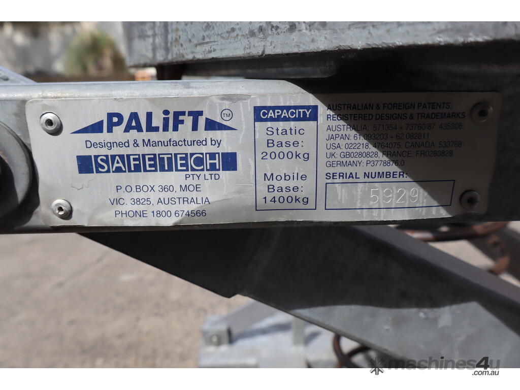 The Mobile Palift is supplied with heavy duty casters for easy relocation.