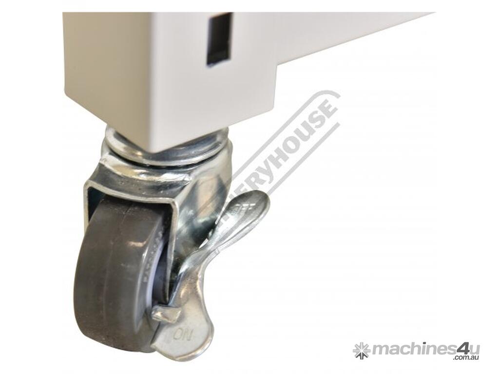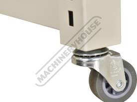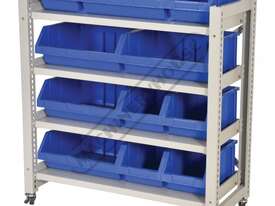 Heavy duty powder coasted steel frame supplied standard with 4 steel adjustable shelves & swivel casters for a handy mobile storage rack. Use in conjunction with our plastic bins making it ideal for storing components such as washers, screws, bits, bolts, O-rings, rivets for workshops & garages