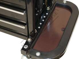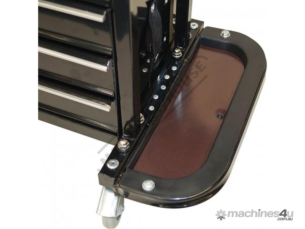 This unique tool cabinet seat has many features right at your finger tips all whilst sitting down, like the 3 x storage drawers , fold away magnetic side trays, 4 swivel wheels making it very easy to manoeuvre & a rear tool storage support for those screwdrivers & odd tools.