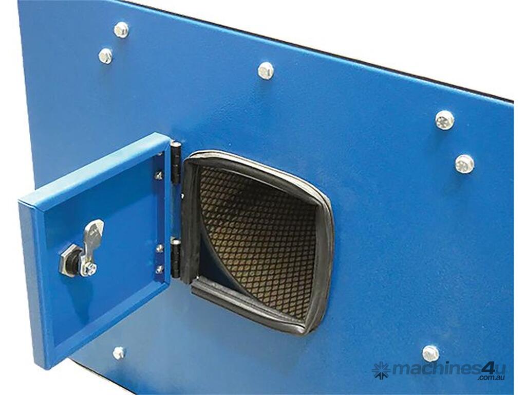Exhaust airflow is directed upwards & away from the floor/ground, for minimal disturbance of dust in surrounding environment