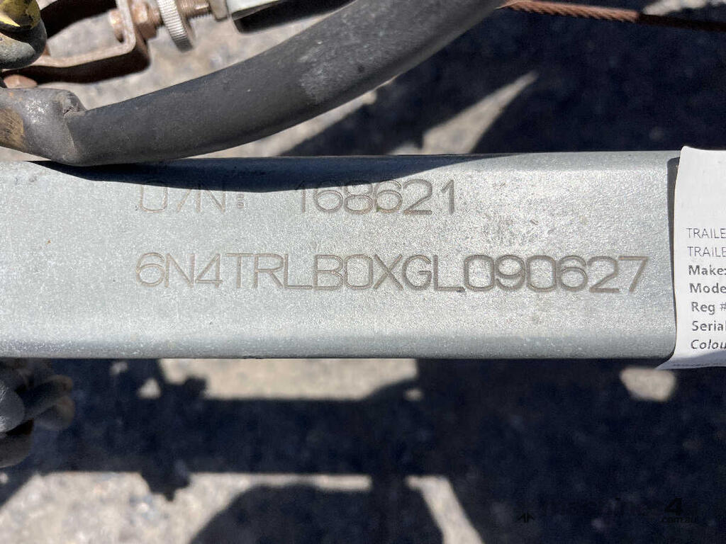 No C/P,Modern,Dual Axle Box Trailer,Hubometer not visible,Colour: Silver,Unregistered,VIN: 6N4TRLB0XGL090627,Sold with No Plates,WOVR Status: WOVR N/A,Incident Type: Impact