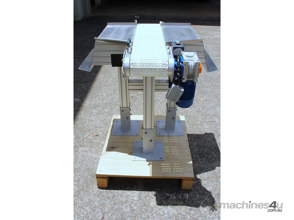 Modular Belt Conveyor, 200mm wide x 980mm long x 900mm high, driven by 3 phase 0.18kw geared motor, complete with On/Off switch, aluminium body, adjustable legs