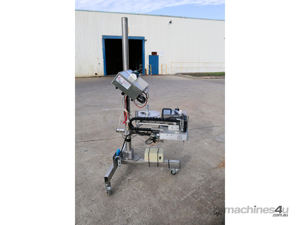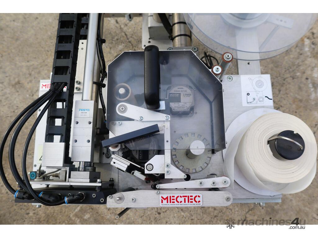 This modular industrial labeling system from Mectec is built for reliability in high-demand environments. This system is in good condition and is well suited to inline use where clear, precise labeling is required. Can be easily integrated into an existing production/conveyor line.