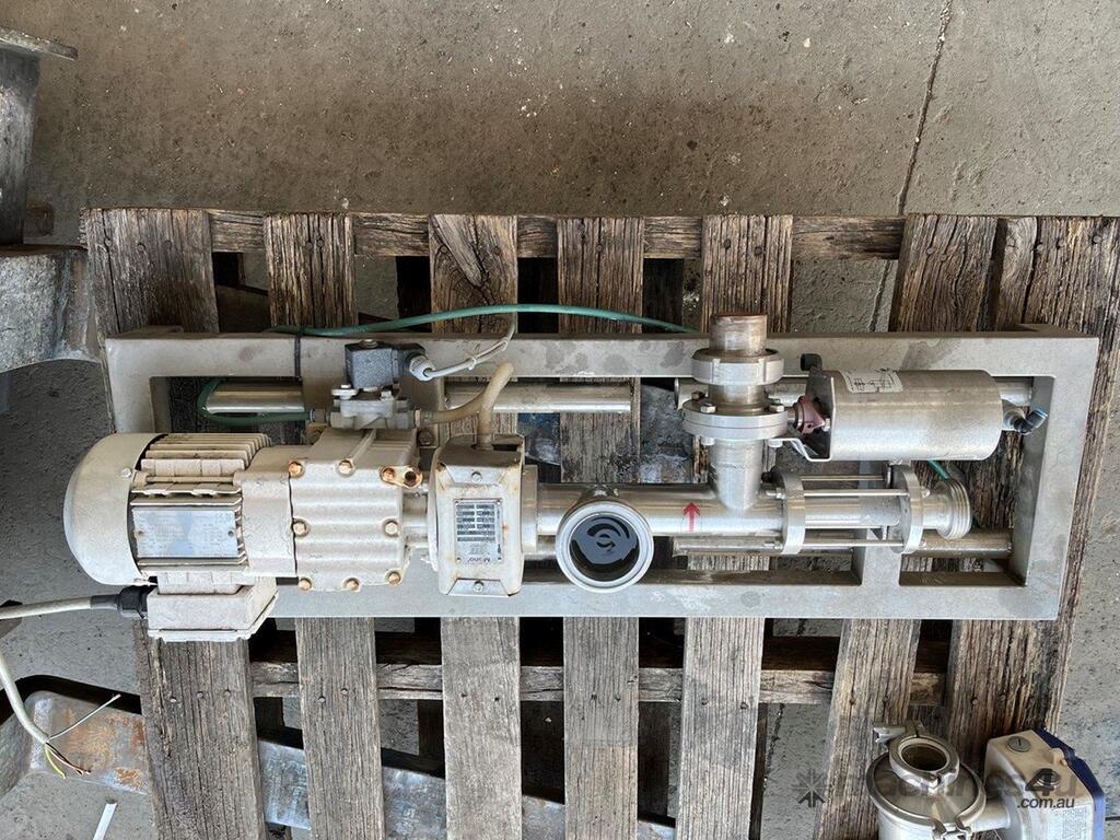 Mono pump on skid. Model LF502 3 phase 0.37kW SEW Geared motor. Max Differential Pressure: 12BAR Max Speed: 1750RPM Temp: 20