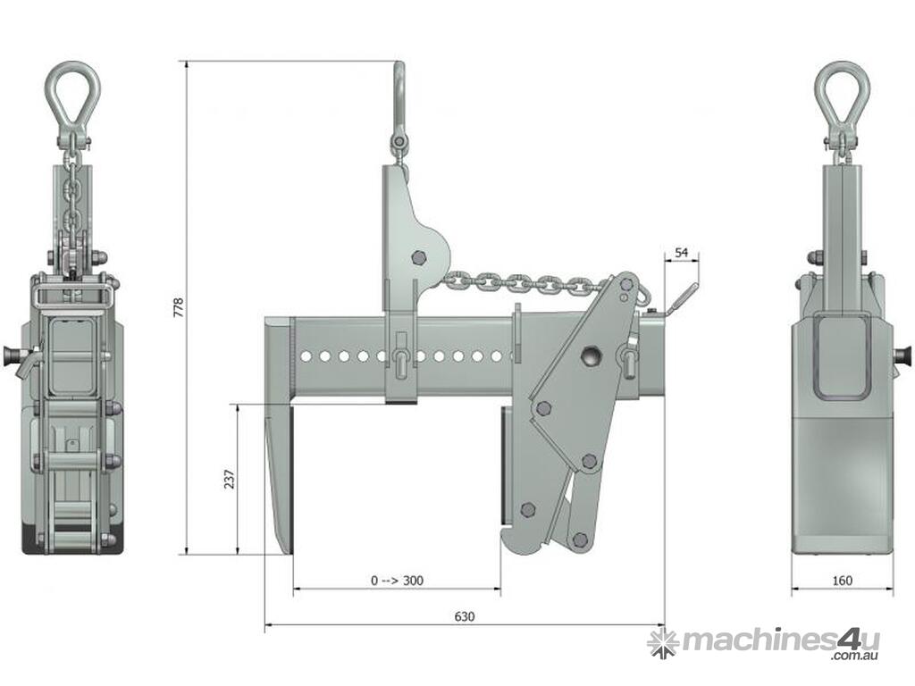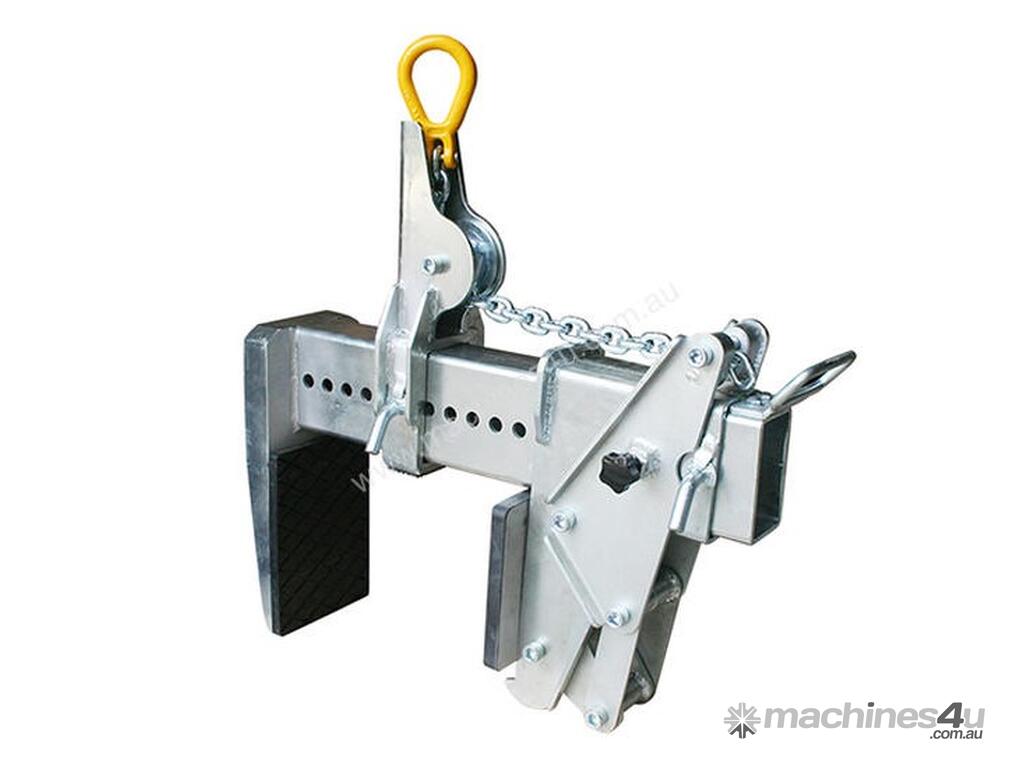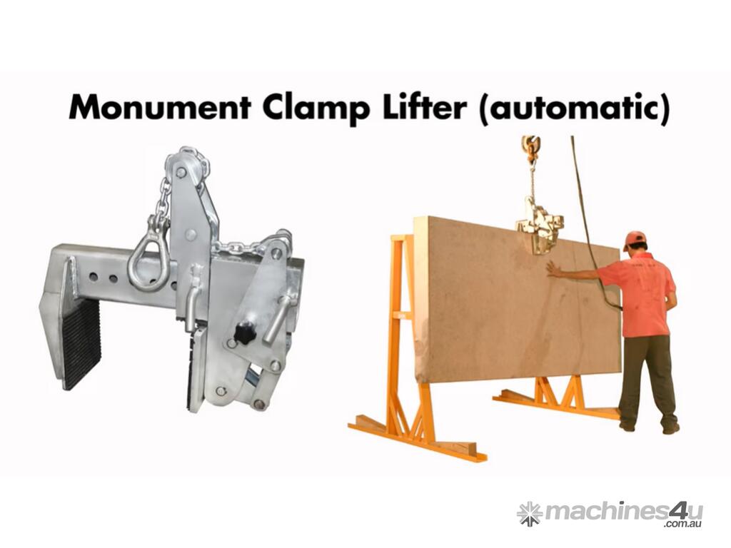 Works with any lifting device. The Aardwolf Monument Lifter (Automatic) is ideal for lifting and setting concrete, stone and marble building fascia. It is useful for moving and setting heavy or awkward retaining wall blocks and slabs. The slim profile allows it to set material in tight places. The clamping jaw and the centre of gravity are easily and quickly adjustable by means of the locking pins. The jaws of the lifter are lined with vulcanised rubber to ensure a safe and non-marking grip. The clamps are gravity controlled, which open when rested and close when lifted.