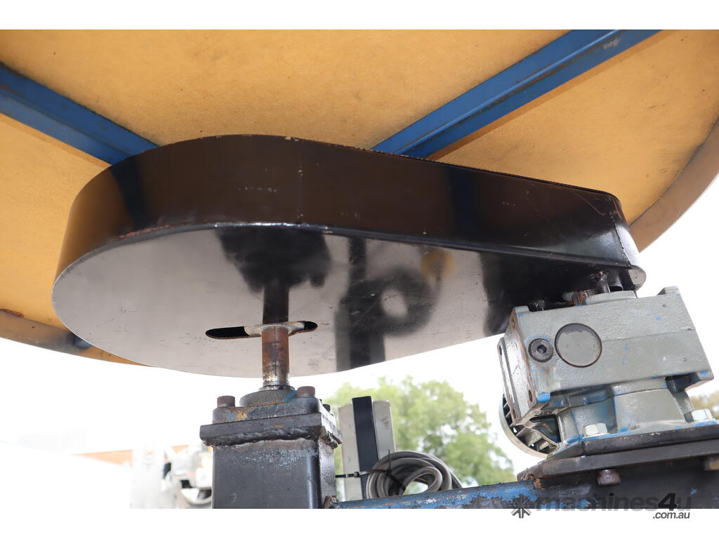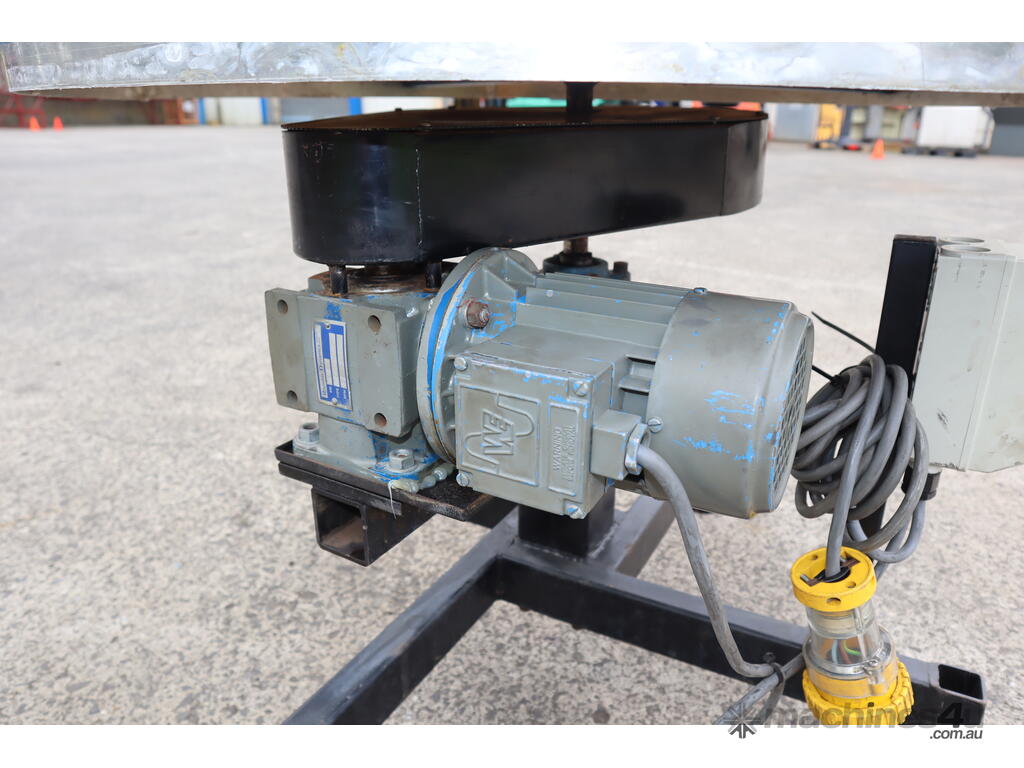 "This motorised accumulation turntable may be ideal for packaging, sorting, and conveyor systems within industries like manufacturing, food production, or logistics. The table allows for the efficient accumulation of products, reducing manual handling and enhancing process efficiency. Businesses involved in packaging lines or material handling systems may benefit from its use. The turntable rotates via an attached motor and gearbox, providing a continuous rotating surface for product accumulation and sorting."