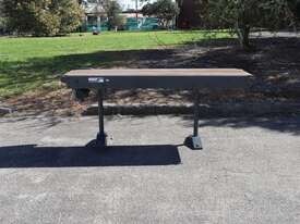 Industrial flat belt conveyor designed for reliable product transfer in demanding environments. Built with a durable motorised drive, it ensures consistent material handling with minimal maintenance. Supported by a robust steel frame with stabilised legs, this conveyor is ideal for integration into production lines, packaging operations, and processing facilities.