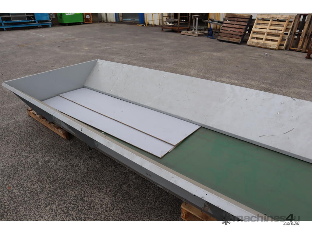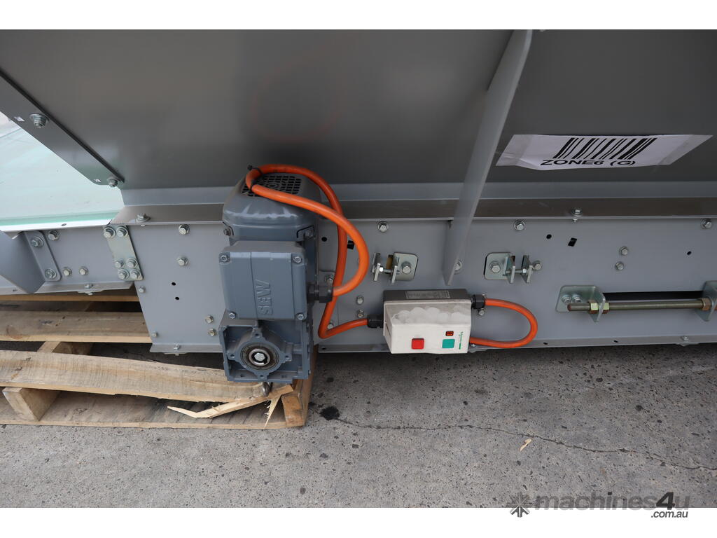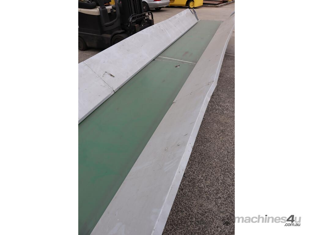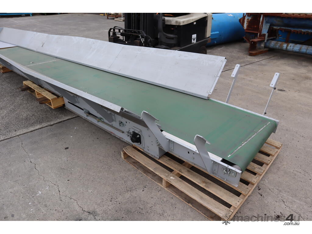 This conveyor is in great working condition. The conveyor has large angled side guards which makes it great for moving large volume of product.