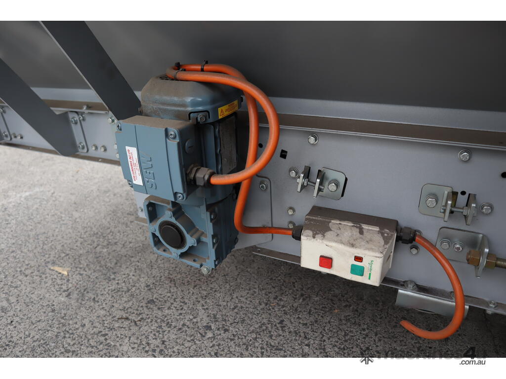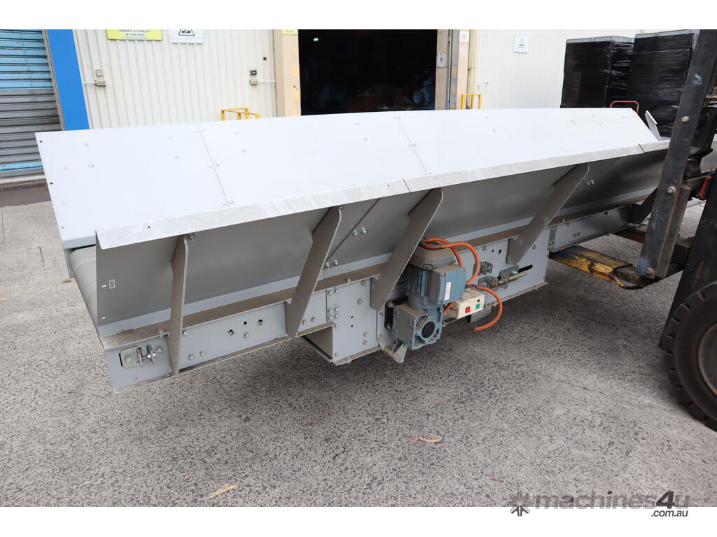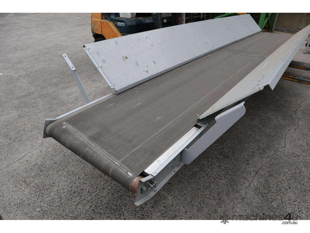 This conveyor is in great working condition. The conveyor has large angled side guards which makes it great for moving large volume of product.