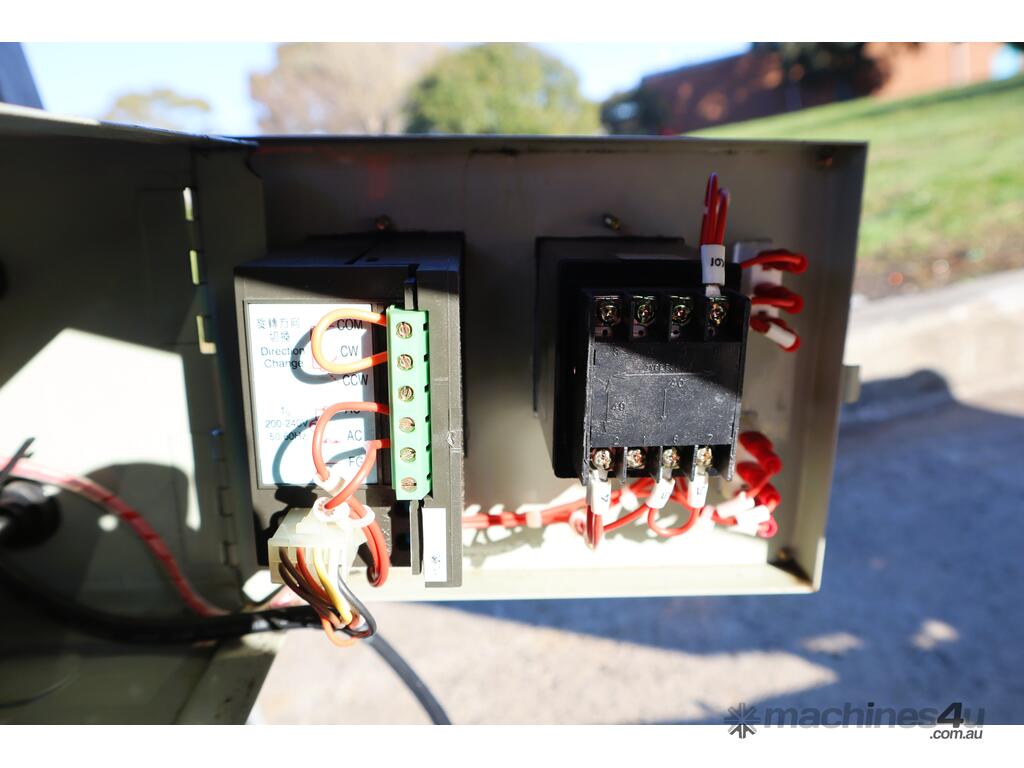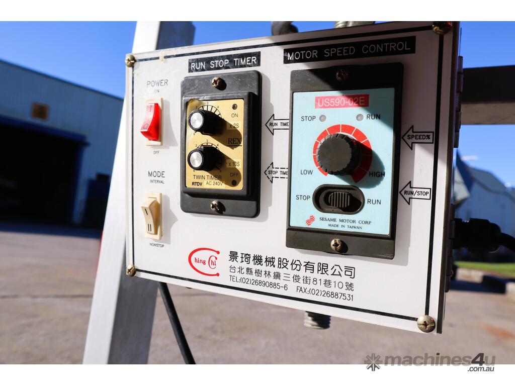 This unit also comes equipped with wheels and brakes for easy mobility and the legs are capable of manual height adjustment. The machine also features a VSD (variable speed drive), and timer dials for precise control of the line.