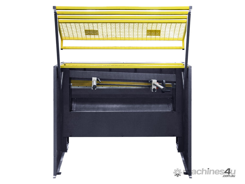 Workshop-Friendly Design Motorised Guillotine. Compact footprint for smaller spaces, support arms for large sheets, and easy operation suit both pros and serious hobbyists/DIY fabricators.