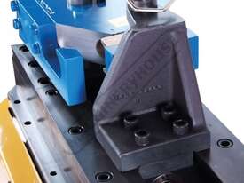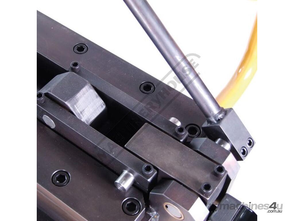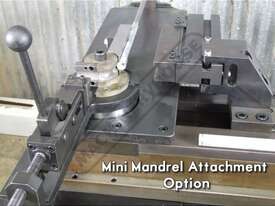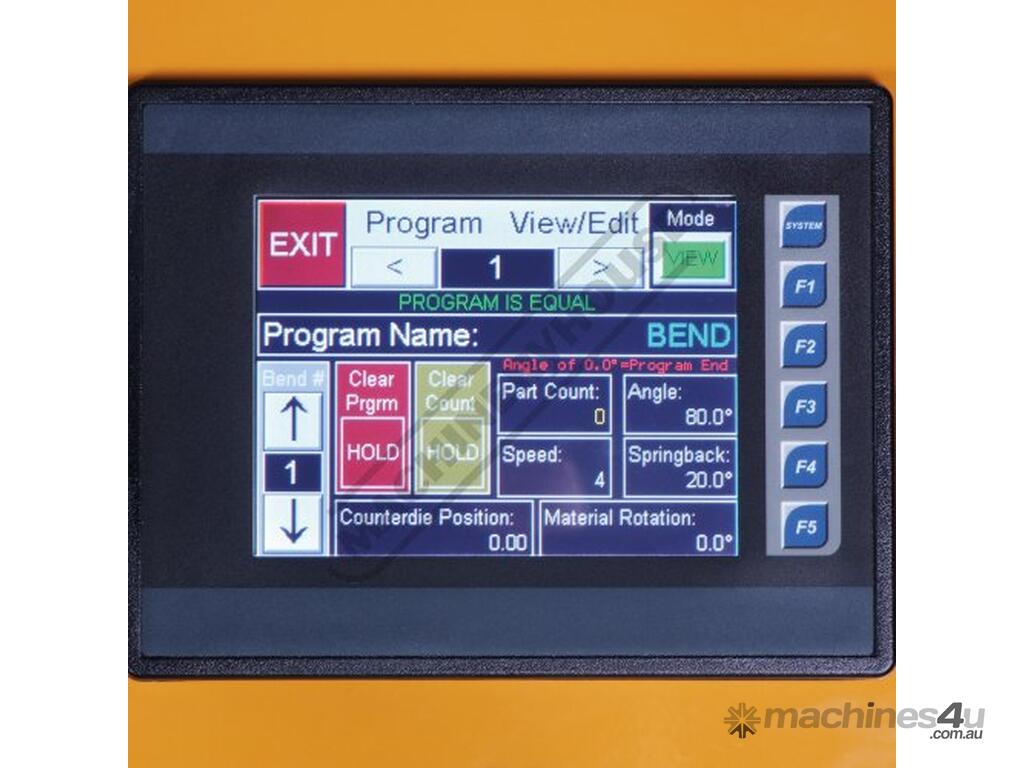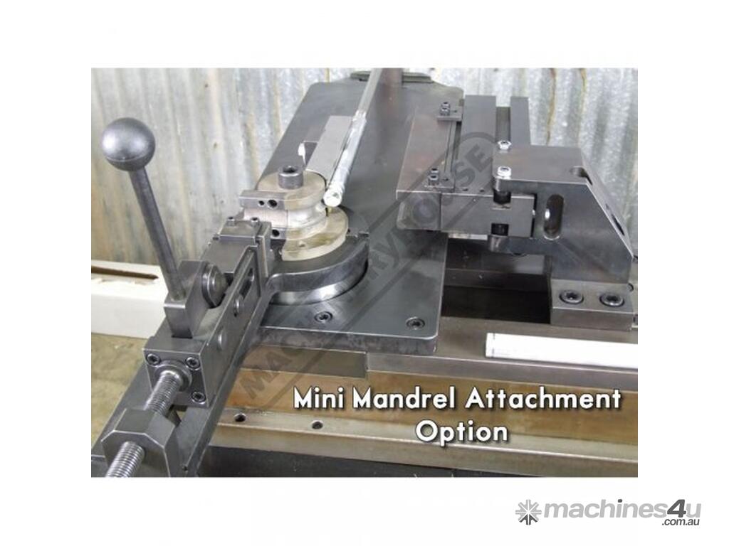 Accepts a rotary positioning table available from in several lengths to achieve accurate bends on varying planes