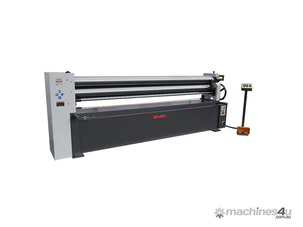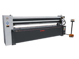 The KANG ESR-9812E is a high-quality motorised plate curve rolling machine designed for professional sheet metal forming, ideal for creating cylinders, curves, tubes, and conical shapes. It features a bending length of 2500 mm and handles up to 2.5 mm thick mild steel across the full width. The plate roller is equipped with three 140 mm diameter hardened steel rolls, a minimum bending diameter of 160 mm, and a roll speed of 6.4 RPM. Powered by a 3.0 kW main motor and a 0.75 kW motor for the back roll, it offers motorised adjustment of the back roll with digital readout for precise positioning.