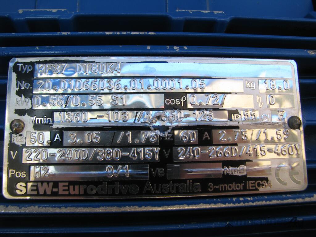 It is powered by a 3 Phase SEW Eurodrive motor.
