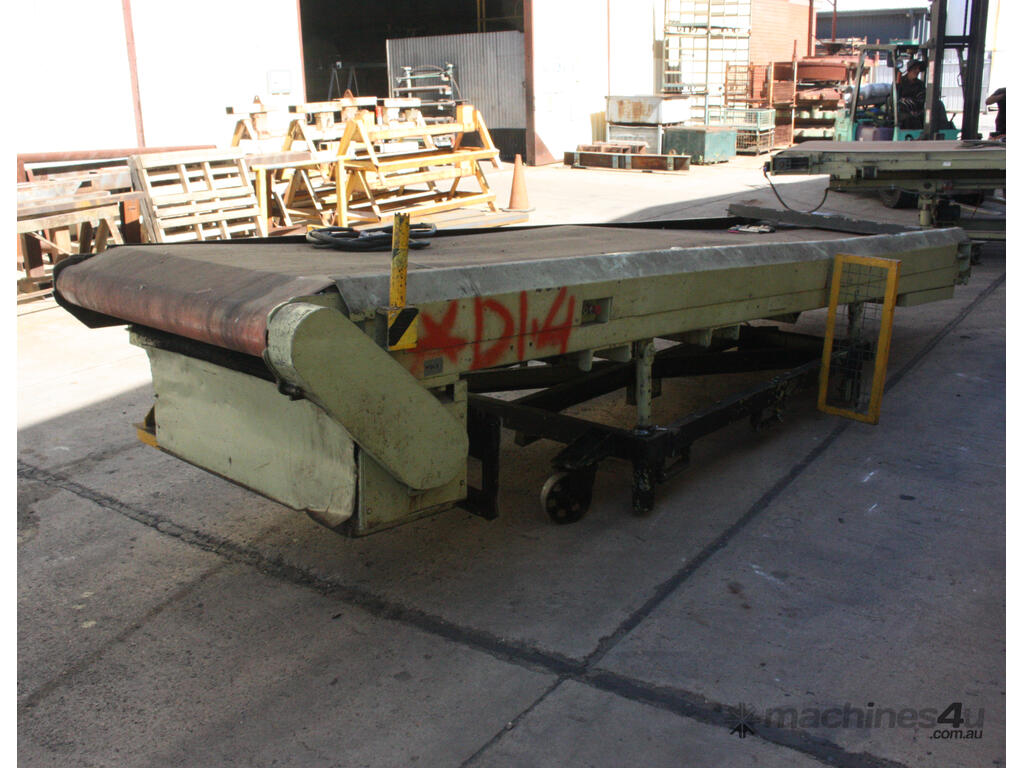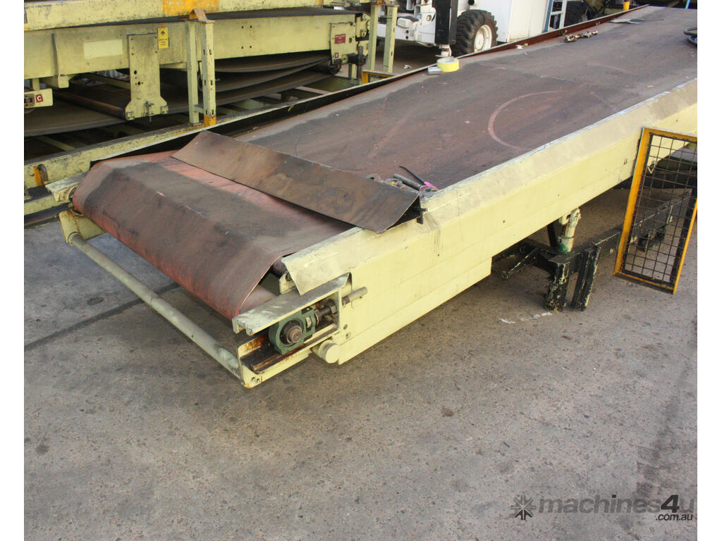 Motorised powered 5.2m long 1260mm wide rubber belt conveyor on trolley