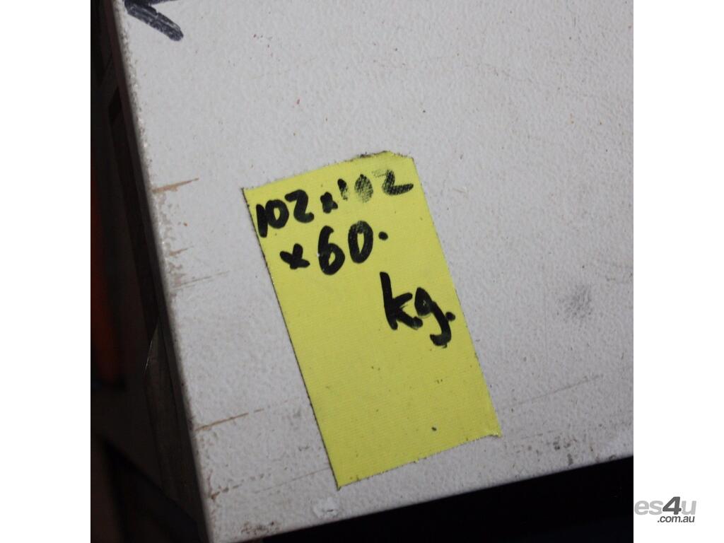 1020 x 1020 x 600mm (at a guess... 150kg)