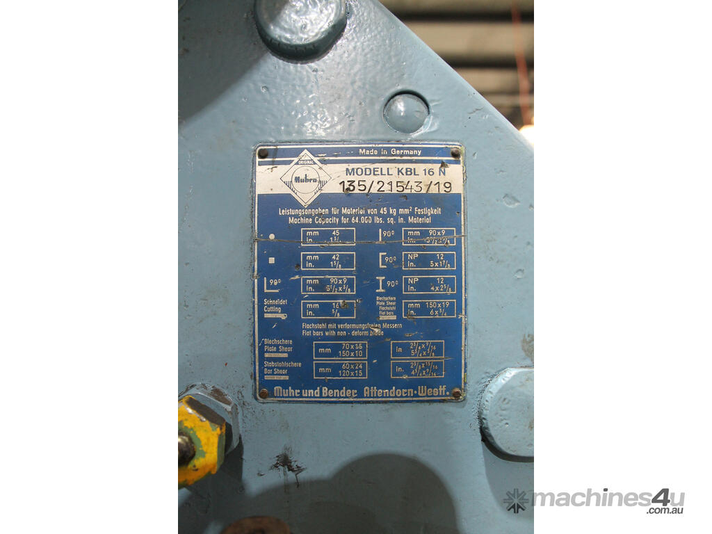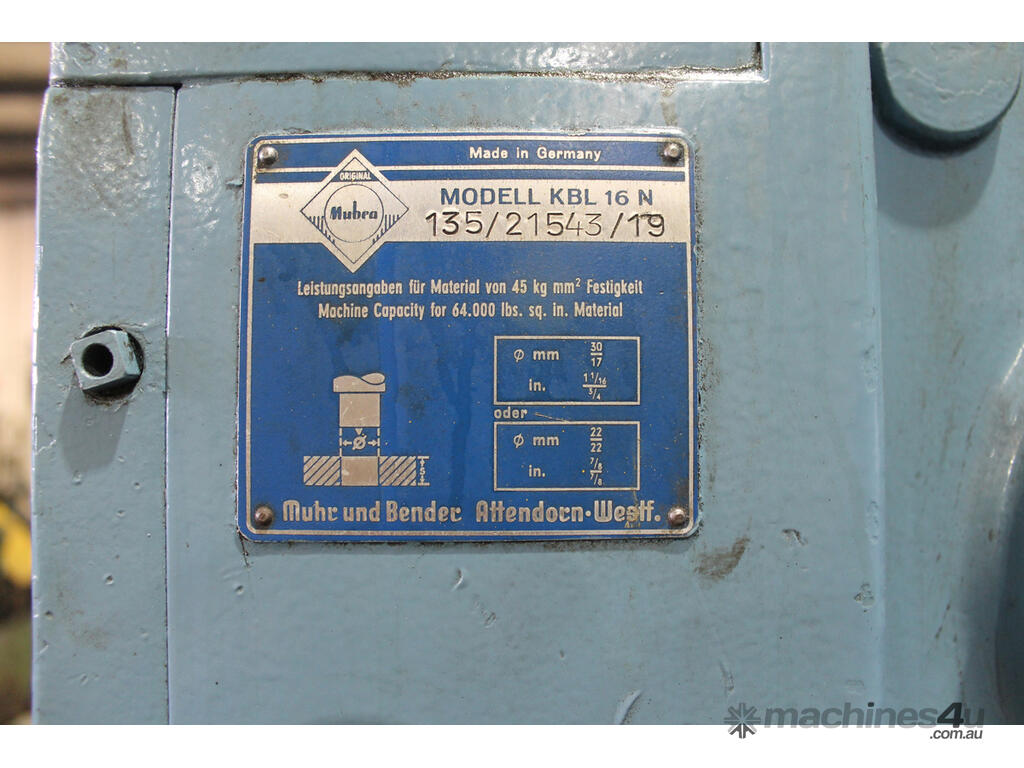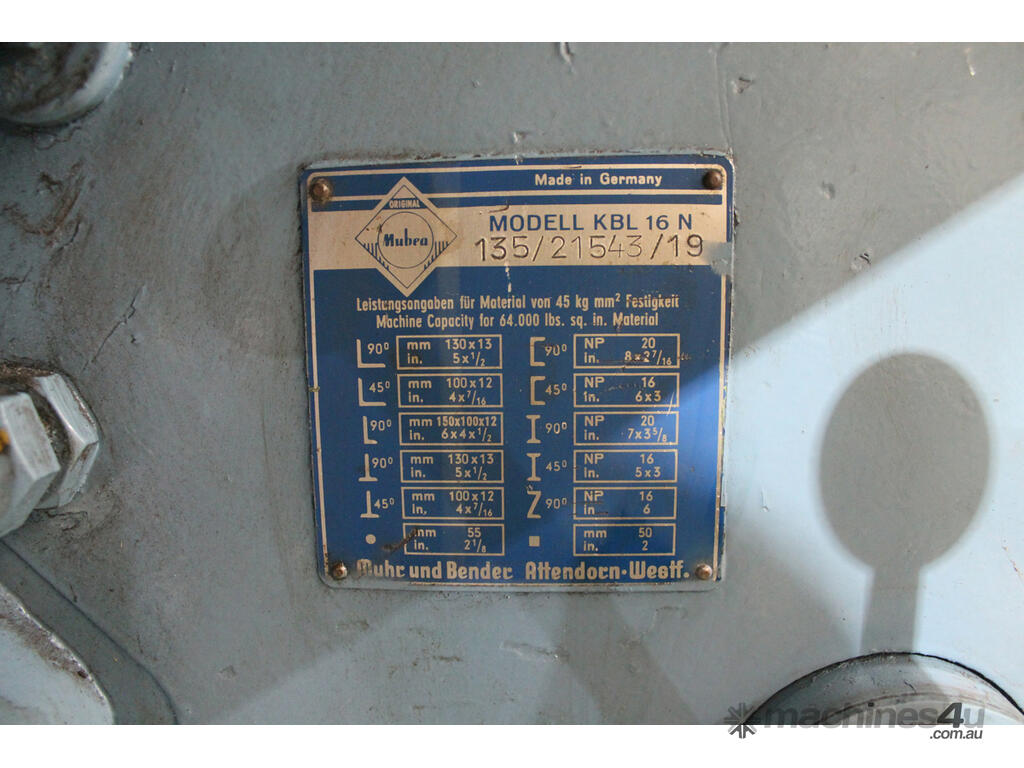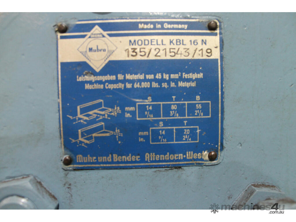 We have an excellent used condition, Mubea KBL 16N Punch & Shear for sale.