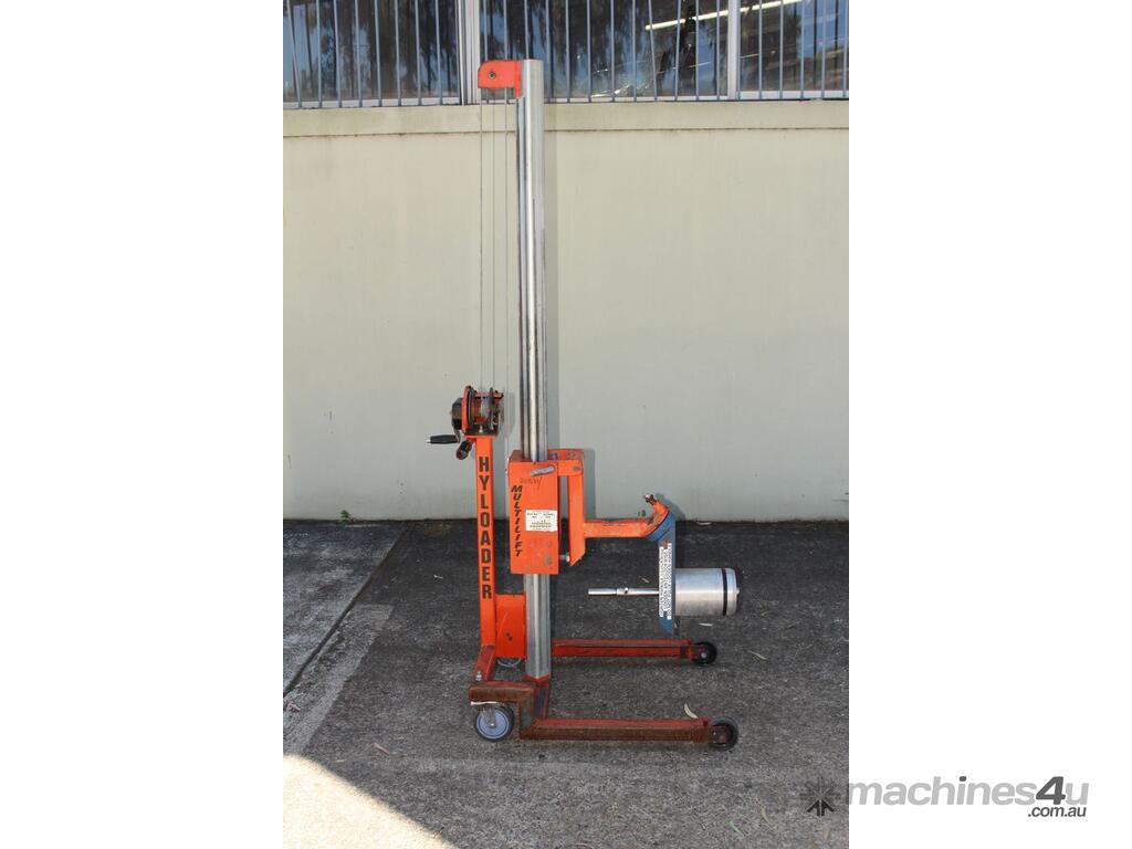 Multi-Purpose Lift Truck, "Hyloader" model Multilift, versatile battery operated mobile lifting unit fitted with roll film attachment, designed for safe handling and lifting of rolls, reels and cylindrical loads, robust construction with adjustable lifting arms and ergonomic control system, suitable for packaging, printing and film handling applications, compact and manoeuvrable design for warehouse and production environments