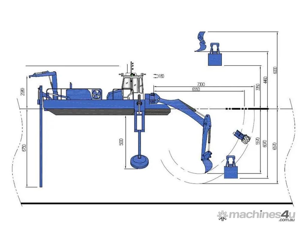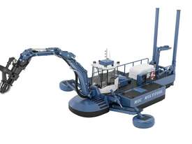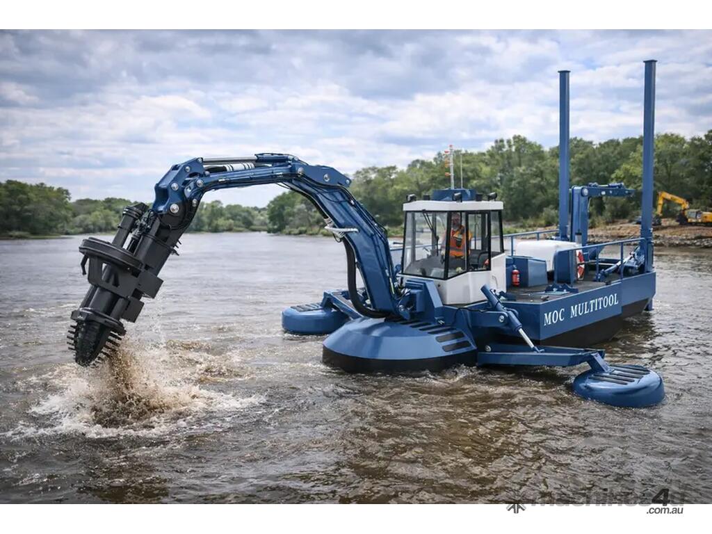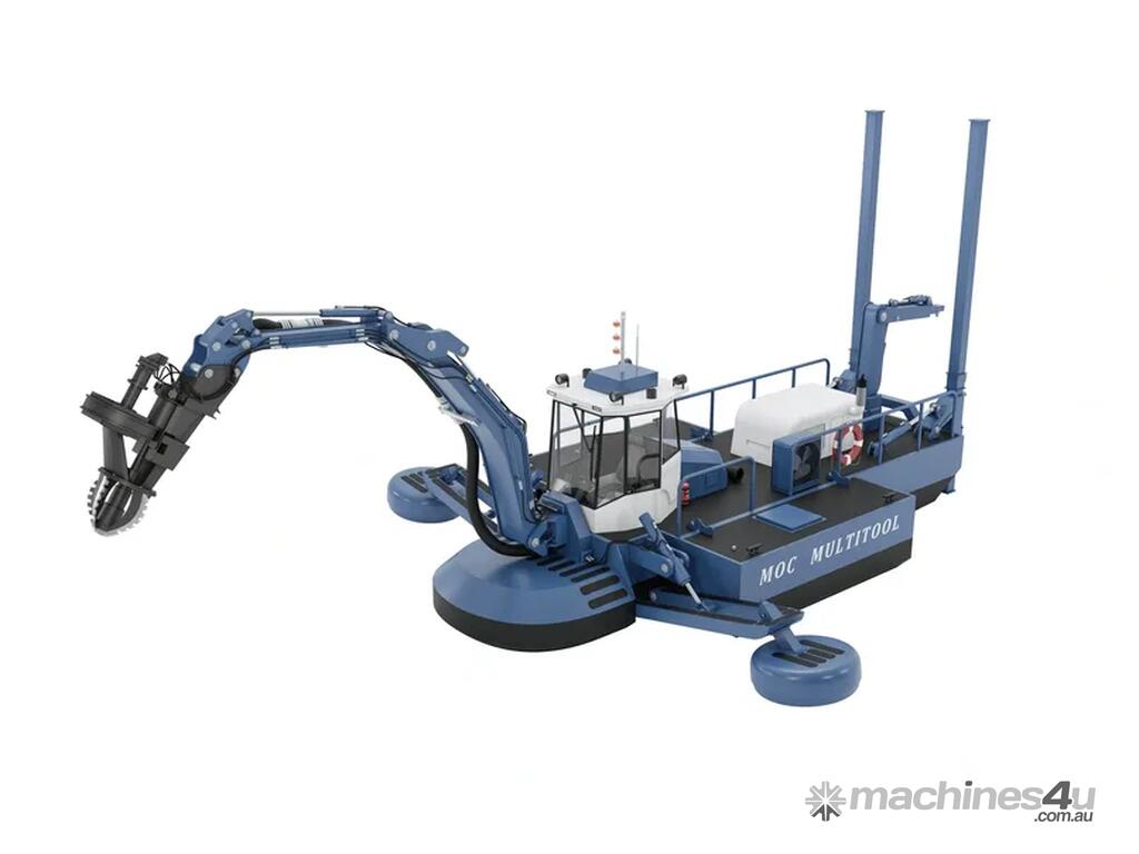 Designed by Australian Marine Technology and built by MOC Shipyards, this compact equipment provides an excellent alternative to various single-purpose machines. Easily transported by truck, the MOC MultiTool can load and unload itself from transportation. Powered by a Caterpillar C7.1 engine delivering 270 HP with dual hydraulic pumps.