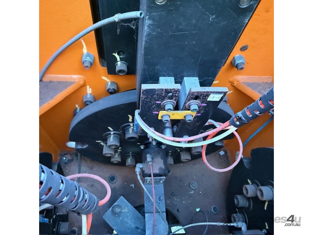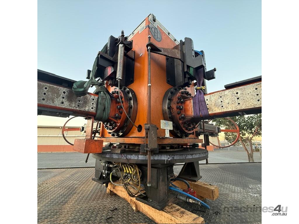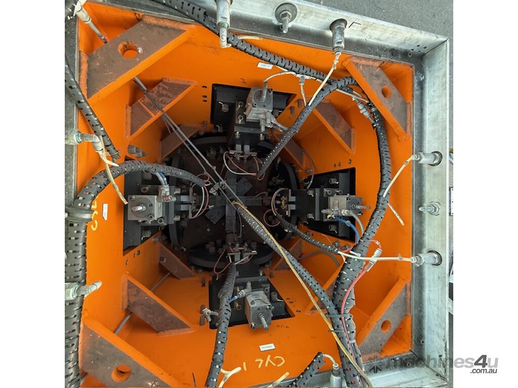 The whole thing rotates and indexes in 4 positions on its vertical axis but also 4 horizontal axis turrets each indexing in its horizontal position.