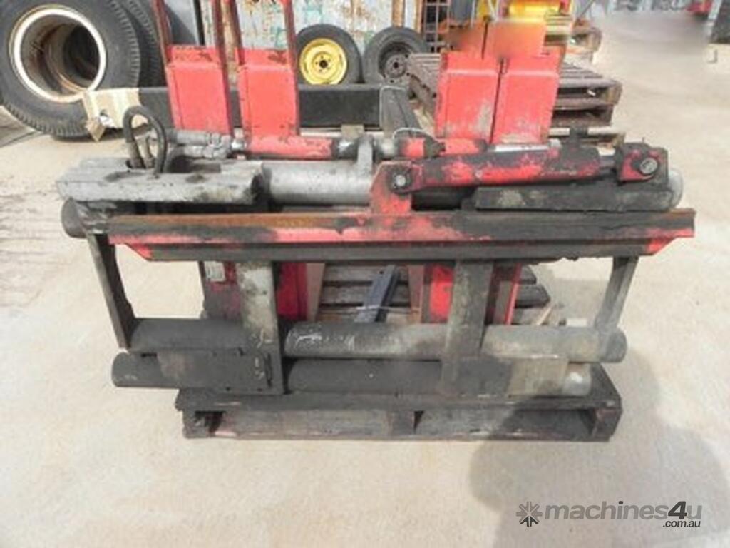 Versatile multi pallet handler featuring side shift, fork positioning, and widening backrests for efficient handling of multiple pallets. One backrest has slight damage, but the machine overall appears to be in very good condition.
