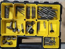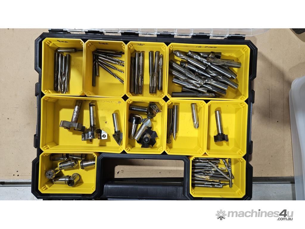 Extras Included: A good mix of router bits for various materials and cutting styles, An assortment of collets to suit different tool shank sizes