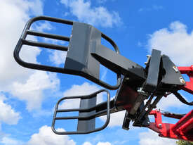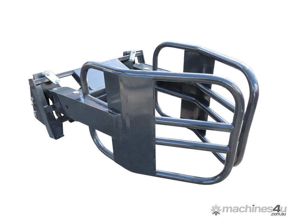 The bale grab's curved arms are hydraulically controlled to squeeze and hold the bale gently. Unlike spike-based bale handlers, a bale grab is ideal for wrapped bales because it doesnt puncture or tear the plastic wrap.