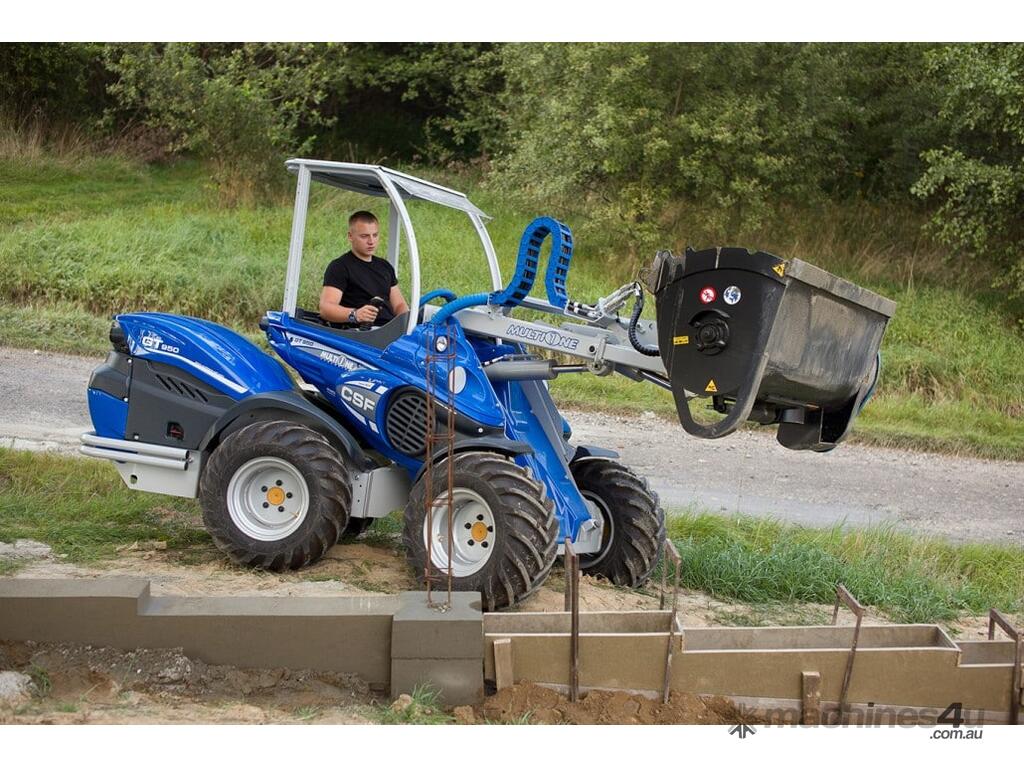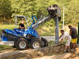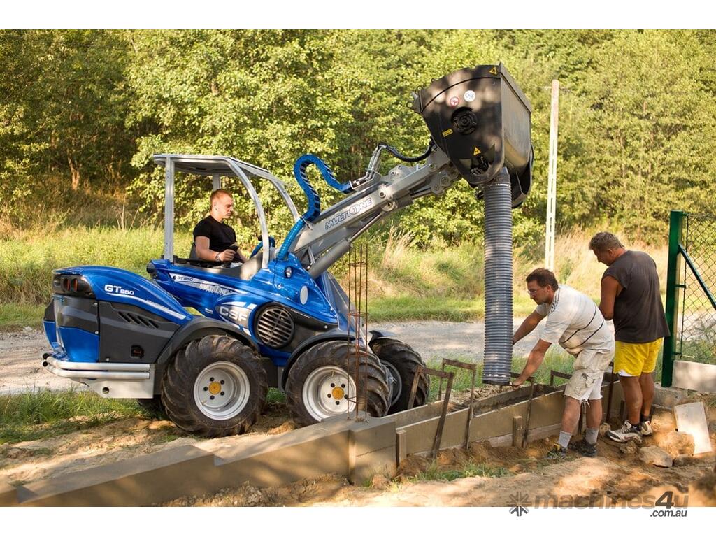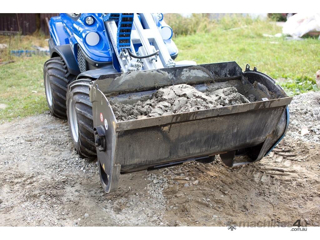 The concrete mixing bucket allows the operator to load, mix, transport, and discharge concrete much faster than the traditional stand-along mixer and wheel barrow. This units compact size, when combined with the MultiOne, makes it ideal for pouring sidewalks, driveways, footings, small buildings floors, and many other limited access locations. The bucket is emptied from the bottom hatch. Hatch opening is powered by a hydraulic cylinder controlled from driver’s seat. The bucket is also equipped with a flexible emptying tube which mounts on the bottom hatch. This enables pouring of the concrete further away from the bucket.