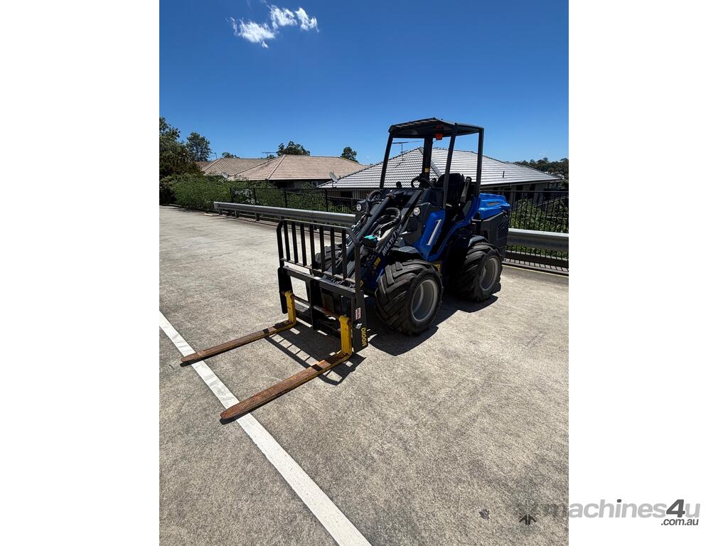 The 8.5sk is a powerful compact loader suitable for a variety of jobs, this one was used for landscaping and comes with a mulch bucket and pallet forks.