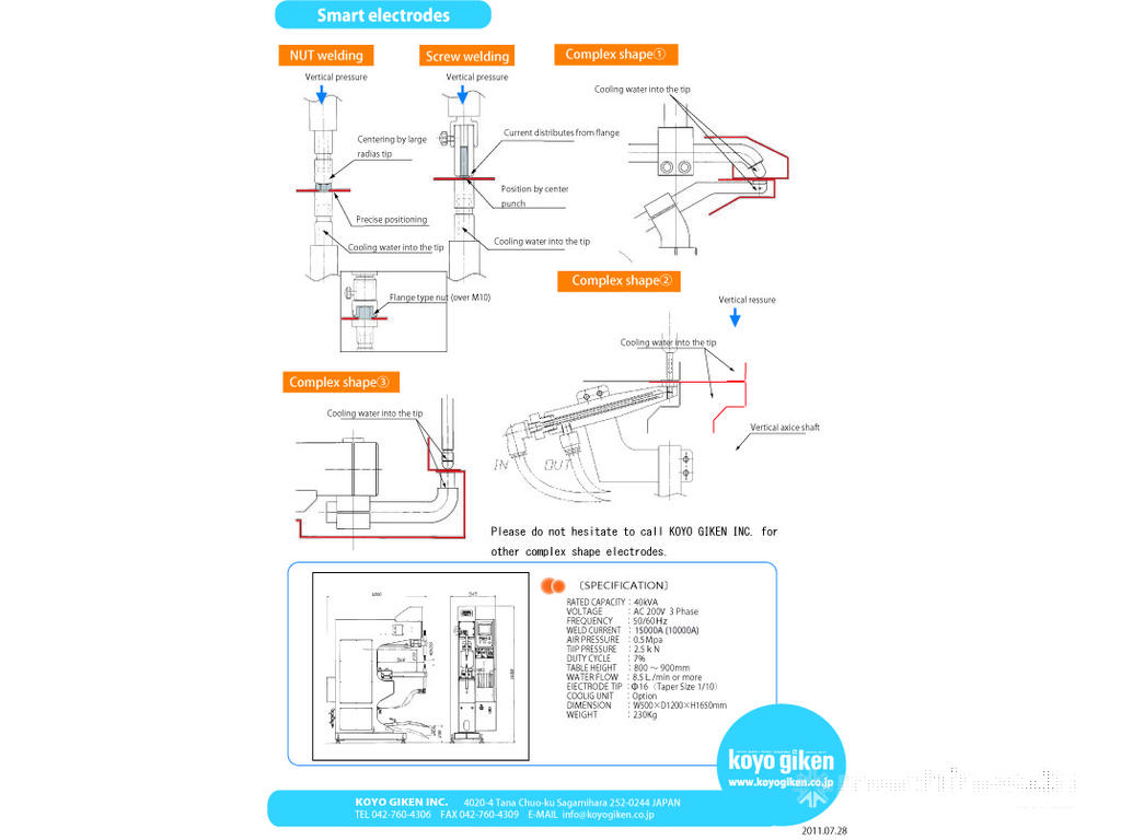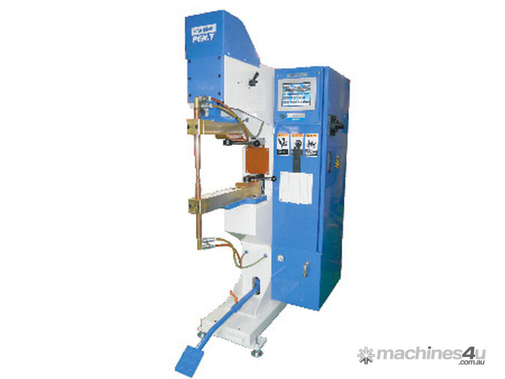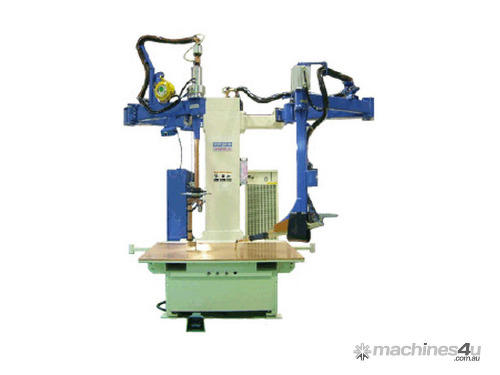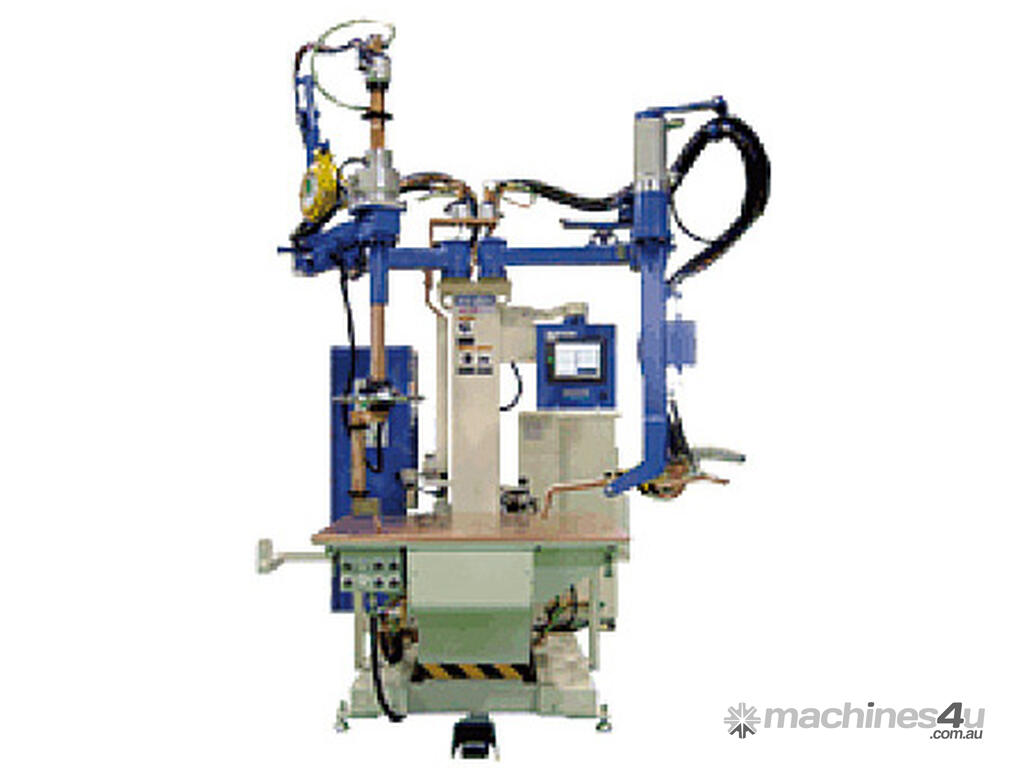 Operator can see clearly where to weld, as work is supported on the table rather than by the operator. Oxidation free welds can be performed on stainless steel using supplied tip attachment. Machines can be both vertical or horizontal or both, and come in a variety of table sizes as standard. Transformers are either AC or DC and an Inverter model for Aluminum welding.