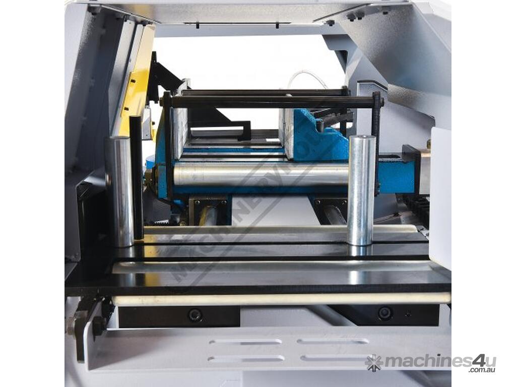 The Hafco Metalmaster EB-330FAS is a fully automatic hitch feed, single mitre bandsaw designed for repetitive cutting of small to medium sized sections in single or pack forms.
