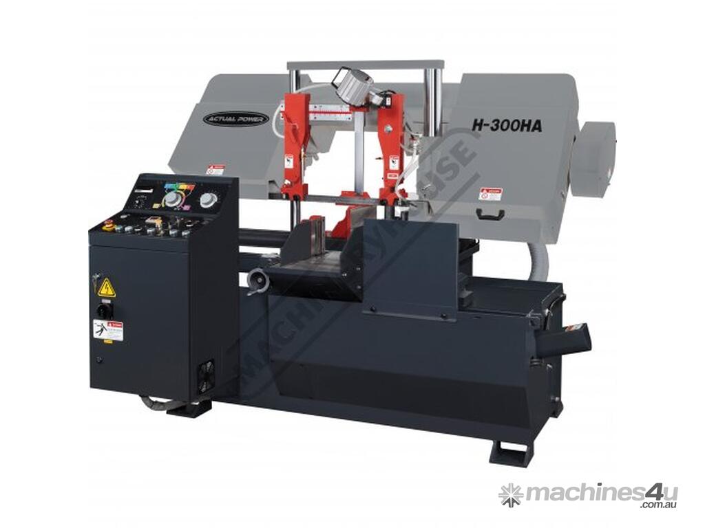 ACTUAL POWER NC Double Column Metal Cutting Band Saw - Automatic Hitch Feed H-300HA-NC Includes Inverter Variable Blade Speed Control, Auto Kerf Compensation, Auto Trim Cut, LCD Touch Screen, Hydraulic Vice Clamping & Hydraulic Downfeed Control 300 x 300mm (W x H) Rectangle Capacity