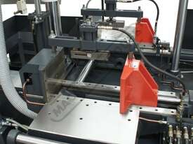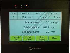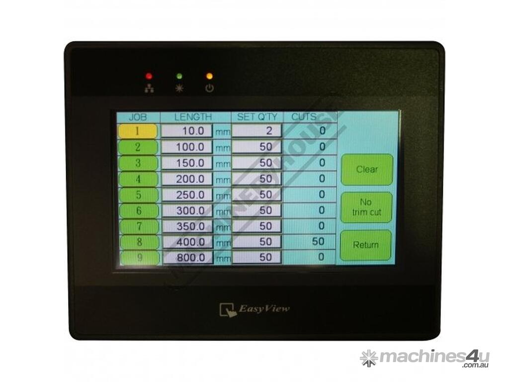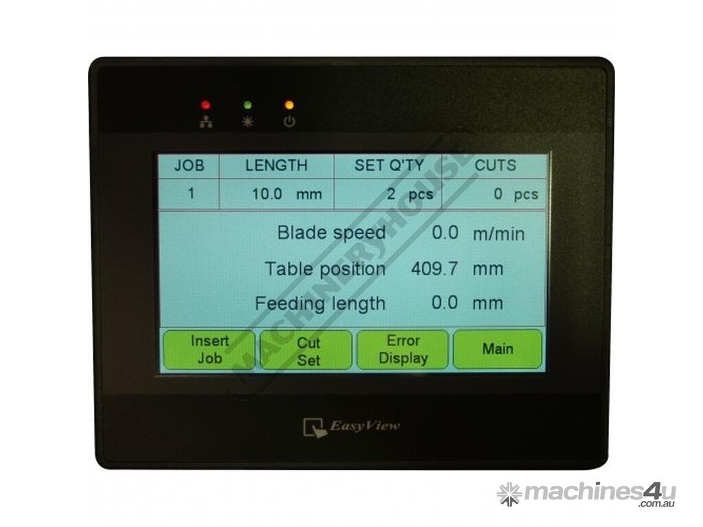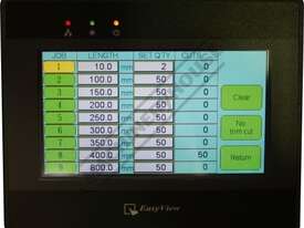 Fully automatic and intelligent HMI touch screen programmable NC control accepts many different job quantities and lengths complete with hydraulic vice clamping and hitch feed system