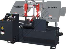 ACTUAL POWER NC Double Column Metal Cutting Band Saw - Automatic Hitch Feed H-300HA-NC Includes Inverter Variable Blade Speed Control, Auto Kerf Compensation, Auto Trim Cut, LCD Touch Screen, Hydraulic Vice Clamping & Hydraulic Downfeed Control 300 x 300mm (W x H) Rectangle Capacity