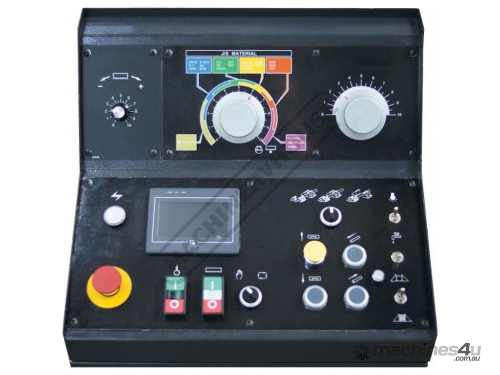 Fully automatic and intelligent HMI touch screen programmable NC control accepts many different job quantities and lengths complete with hydraulic vice clamping and hitch feed system